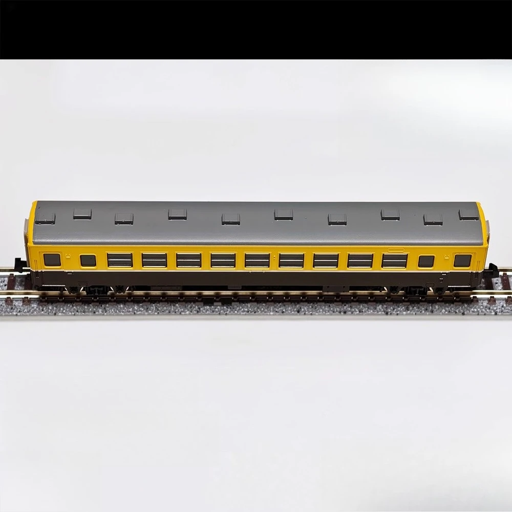 Imagine adding a striking and highly detailed train set to your collection, designed to captivate with its vibrant yellow finish and intricate craftsmanship. This four-piece set, modeled at a 1:160 scale, features a robust DE10 diesel locomotive accompanied by three matching passenger cars, creating a realistic and visually appealing train that looks perfect on your display shelf or model railway. The locomotive’s compact, rectangular body with a gently rounded top, detailed windows, small doors, and metal railings evoke authentic charm. The passenger cars share the same bright yellow hue, with flat gray roofs and outlined windows, enhancing the overall sleek and realistic appearance. Crafted from durable plastic, this set promises precision, style, and long-lasting enjoyment for adult enthusiasts or collectors.