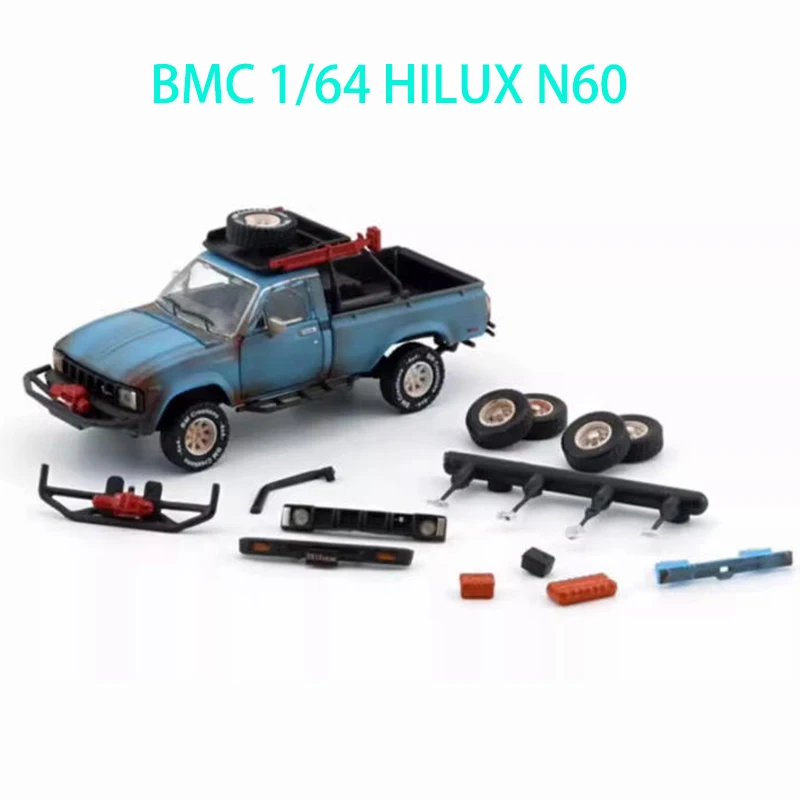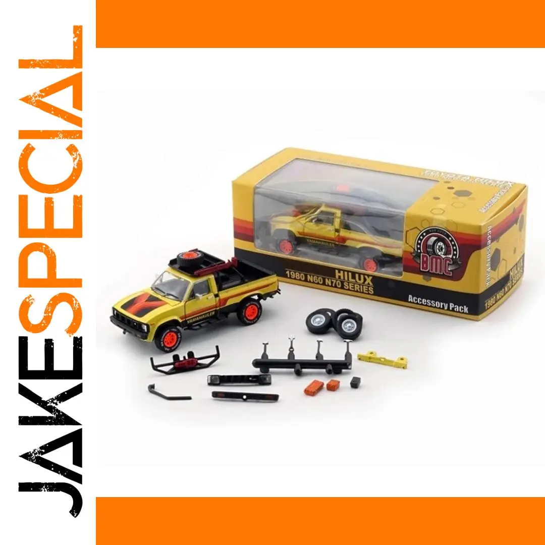 This highly detailed 1/64 scale diecast alloy model of the Toyota Hilux N60 pickup features a vibrant yellow finish with black and red accents, capturing the sleek design and proportions of the original vehicle. Crafted from durable metal, it includes black trim around the windows, a black front grille, and bright red wheels with black tires for striking visual appeal. Perfect for collectors and enthusiasts, this static display model emphasizes craftsmanship with no electrical components or batteries, making it an ideal decorative or souvenir item that vividly showcases the iconic pickup’s authentic style and vibrant color options.