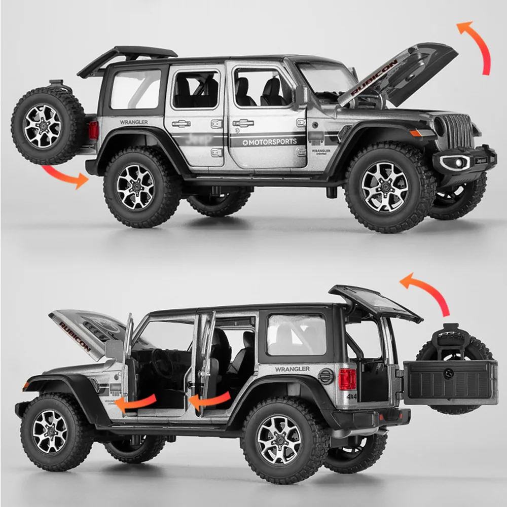 Experience the thrill of owning this highly detailed, vibrant yellow Wrangler G63 model car. Crafted with a durable zinc alloy body and a plastic chassis, this 1:22 scale replica offers an impressive combination of realism and resilience. Measuring approximately 23.5cm in length, 11cm in width, and 10cm in height, it features a textured surface mimicking real metal alloy, complete with authentic decals like “RUBICON” and “WRANGLER.” The rugged design showcases a prominent front grille, round headlights, simulated vents on the hood, and stylish black rims with silver accents. With openable doors, windows, and a trunk that opens to 120°, this model allows you to explore every detail of the off-road vehicle—ideal for collectors and enthusiasts alike.