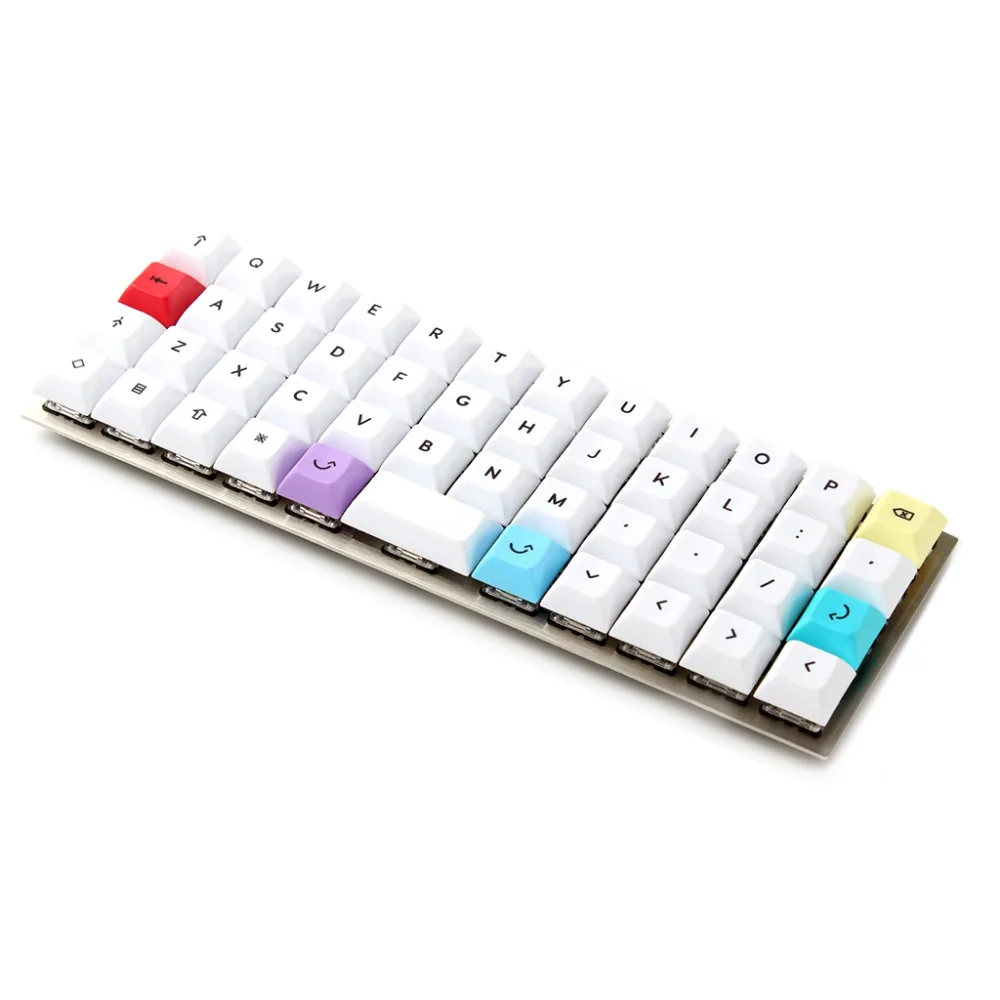 Experience the perfect blend of style and function with this set of colorful, high-profile YMDK DSA keycaps. Crafted from durable PBT plastic with a thickness of about 1.4mm, these keycaps ensure longevity and a premium feel. The uniform, ball-shaped DSA profile provides a sleek, ergonomic surface, enhancing typing comfort and aesthetic appeal. Designed specifically for MX switches, this set is compatible with a wide range of compact, ortholinear keyboards including Planck, YMD40 v2, Niu40, and Corne Split models with configurations of 36, 40, 46, and 50 keys. The bright color accents combined with minimalistic black engravings create a modern, clean look, perfect for enthusiasts who want to personalize their keyboard with a vibrant, yet refined touch.
