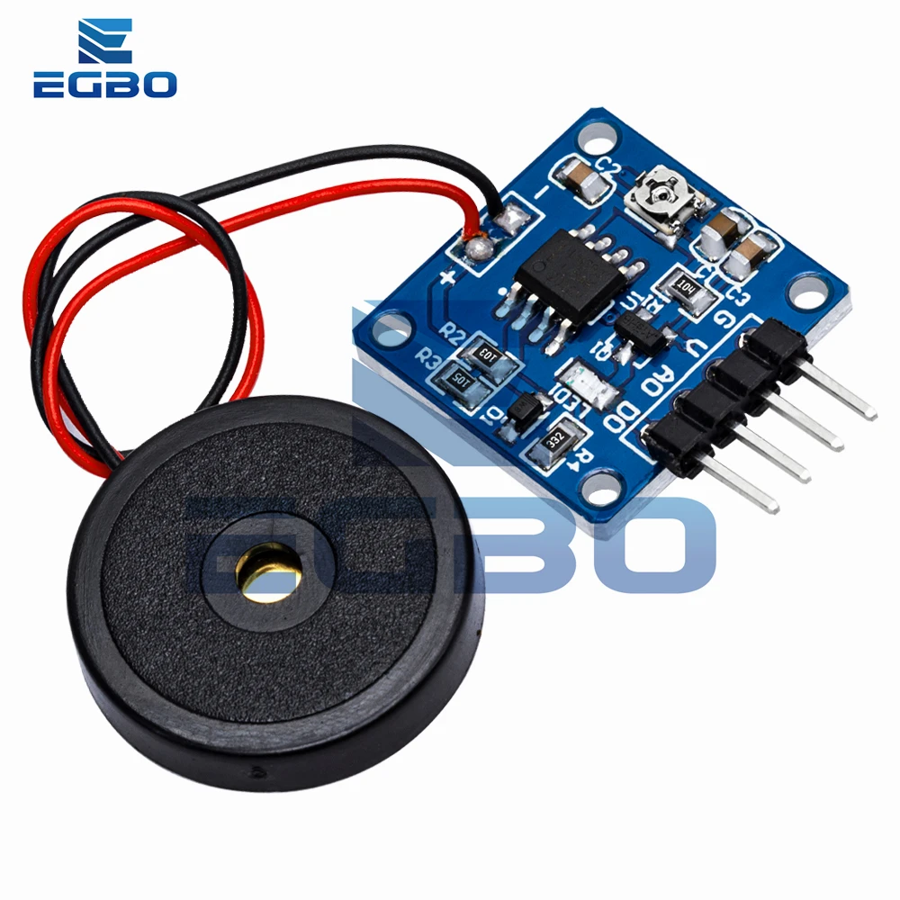 Experience seamless vibration sensing with this high-quality module, perfect for detecting operational movements, tremors, or positional changes. Designed with a durable metal construction, it combines a textured black round sensing head with a striking yellow center, adding visual clarity. The sleek blue circuit board showcases well-arranged components, including resistors, capacitors, and a dedicated integrated circuit, all precisely soldered for reliable performance. A prominent red LED indicator signals operational status, while the sensitivity can easily be adjusted via the dedicated potentiometer. Offering both digital and analog signal outputs, this module efficiently interfaces with microcontroller platforms for real-time monitoring. Suitable for various industrial, automation, and security applications, this sensor guarantees accuracy and durability in demanding environments.