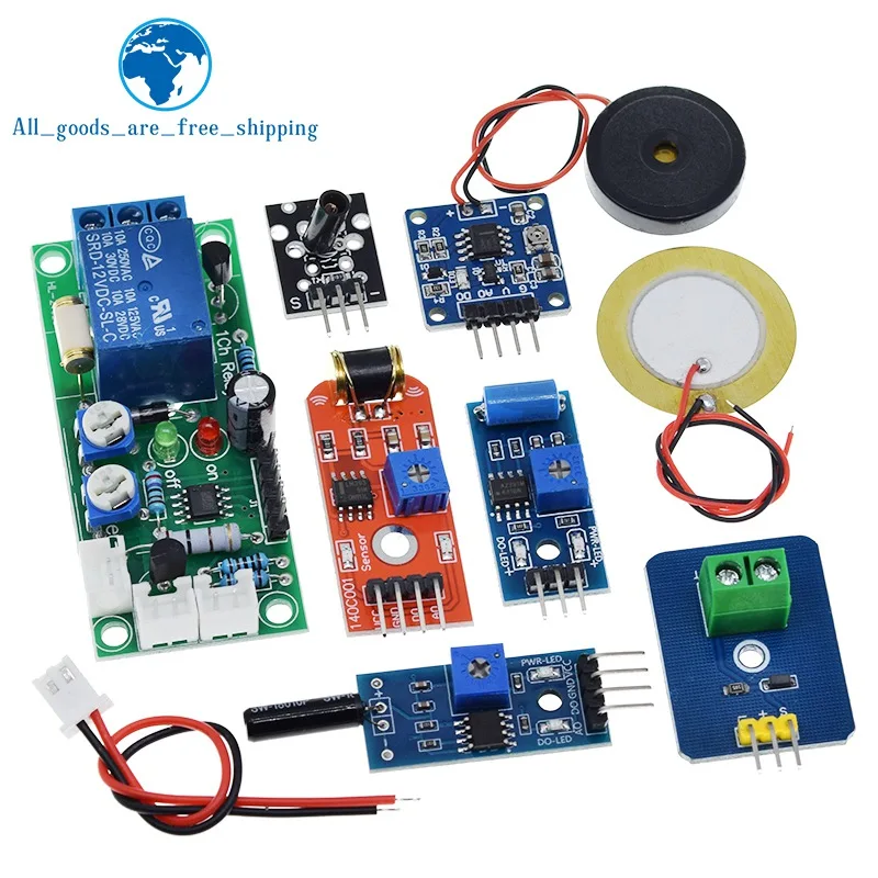 Experience precise vibration detection with this highly sensitive analog vibration switch module, available in 1 or 3-piece configurations. Featuring ceramic piezoelectric sensors like SW-420, SW-18010P, and SW-18015P, it functions as a normally open or normally closed alarm sensor, perfect for switch and sensor applications with STM. This customized, new module offers reliable vibration sensing and alarm triggering without containing high-concern chemicals. Its organized layout of colorful circuit boards, sensors, and potentiometers makes it ideal for testing, prototyping, and integrating into vibration monitoring systems, providing you with a durable and versatile detection solution for your projects.