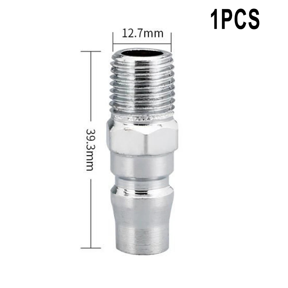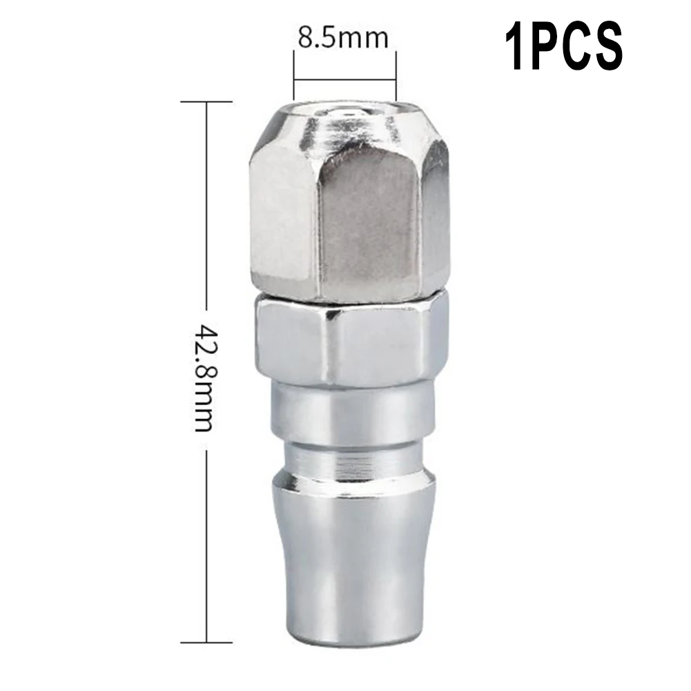 This industrial-grade pneumatic quick coupler is crafted from durable galvanized iron with a sleek silver finish, designed for reliable and fast connections in air compressor systems. Compatible with models SP20, PP20, SM20, PM20, SH20, PH20, SF20, and PF20, it features a quick-release mechanism that simplifies connecting and disconnecting air hoses. Made from alloy steel, this single-piece fitting boasts precise threading and a robust construction, ensuring long-lasting performance in demanding applications. Its streamlined design combines functionality with an industrial aesthetic, making it an essential component for power tools and pneumatic setups where durability and ease of use are paramount.