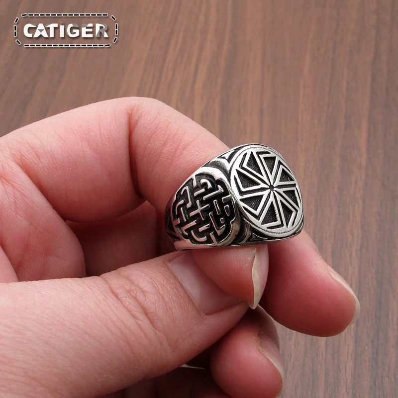 Imagine yourself confidently wearing this bold and stylish Punk 316L Stainless Steel Vikings Slavic Wheel Amulet Ring, crafted to highlight your unique style. With its intricate runic design inspired by Scandinavian Viking symbols, this ring brings a cool punk and gothic vibe to your look. Perfect for special occasions or daily wear, it adds an edgy touch to any outfit. Made from durable 316L stainless steel, it offers long-lasting shine without tarnishing. Its unisex design ensures an excellent fit for everyone, offering comfort and style. Elevate your jewelry collection with this striking piece that symbolizes strength, history, and individuality. Visualize your confident silhouette adorned with this captivating Viking-inspired accessory.