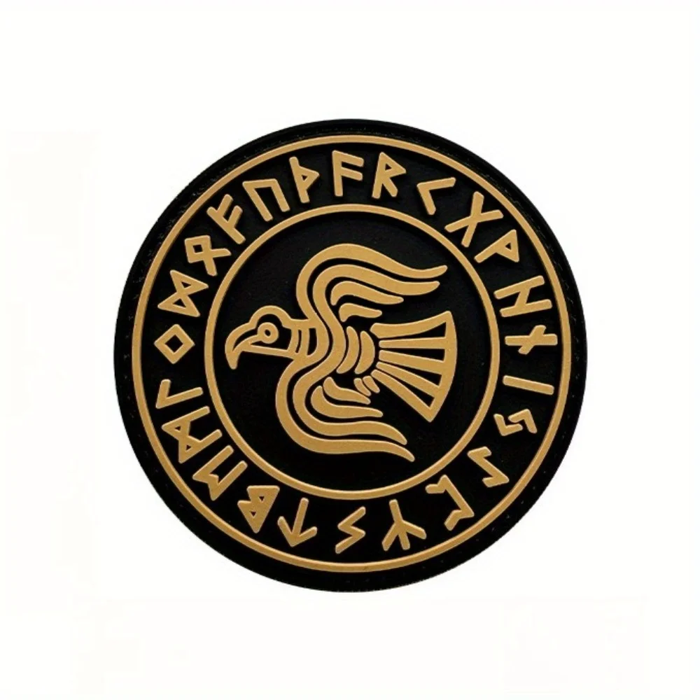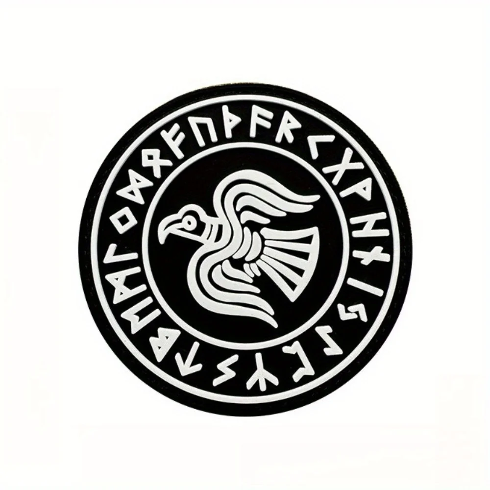 - Designed with a stylized mythological bird motif, symbolizing flight, strength, and ancient traditions, framed within a circular border of Norse-inspired runes for aesthetic influence.
