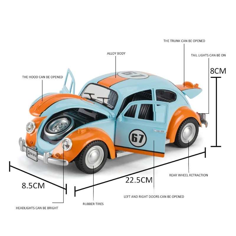 Keys features of this 1/18 Scale Beetle 1955 Vintage Alloy Car