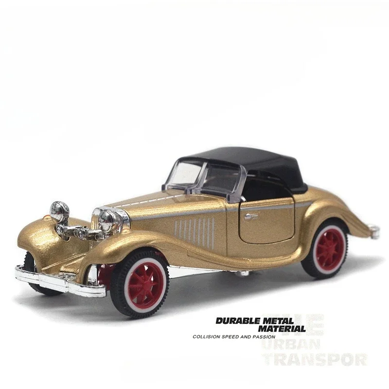 Step into a world of classic elegance with this meticulously crafted 1:32 scale diecast model car. Measuring approximately 14″ long, this collectible masterpiece features a sleek, alloy vintage design that captures the charm and sophistication of past eras. The glossy, metallic finish in vibrant red, black, blue, gold, or white enhances its timeless appeal, while the chrome accents on the grille, bumper, and headlights add a luxurious touch. The black hardtop roof and detailed miniatures create an authentic vintage aesthetic. Perfect for display, gifting, or adding to an advanced collection, this non-electronic metal model is a symbol of refined taste and nostalgic beauty. Its high-quality craftsmanship elevates any collection or decor.