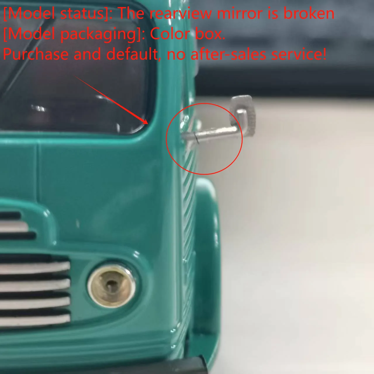 - Model exhibits minor flaws: broken rearview mirror and paint rashes, reflecting its authentic, aged, and collectible condition.