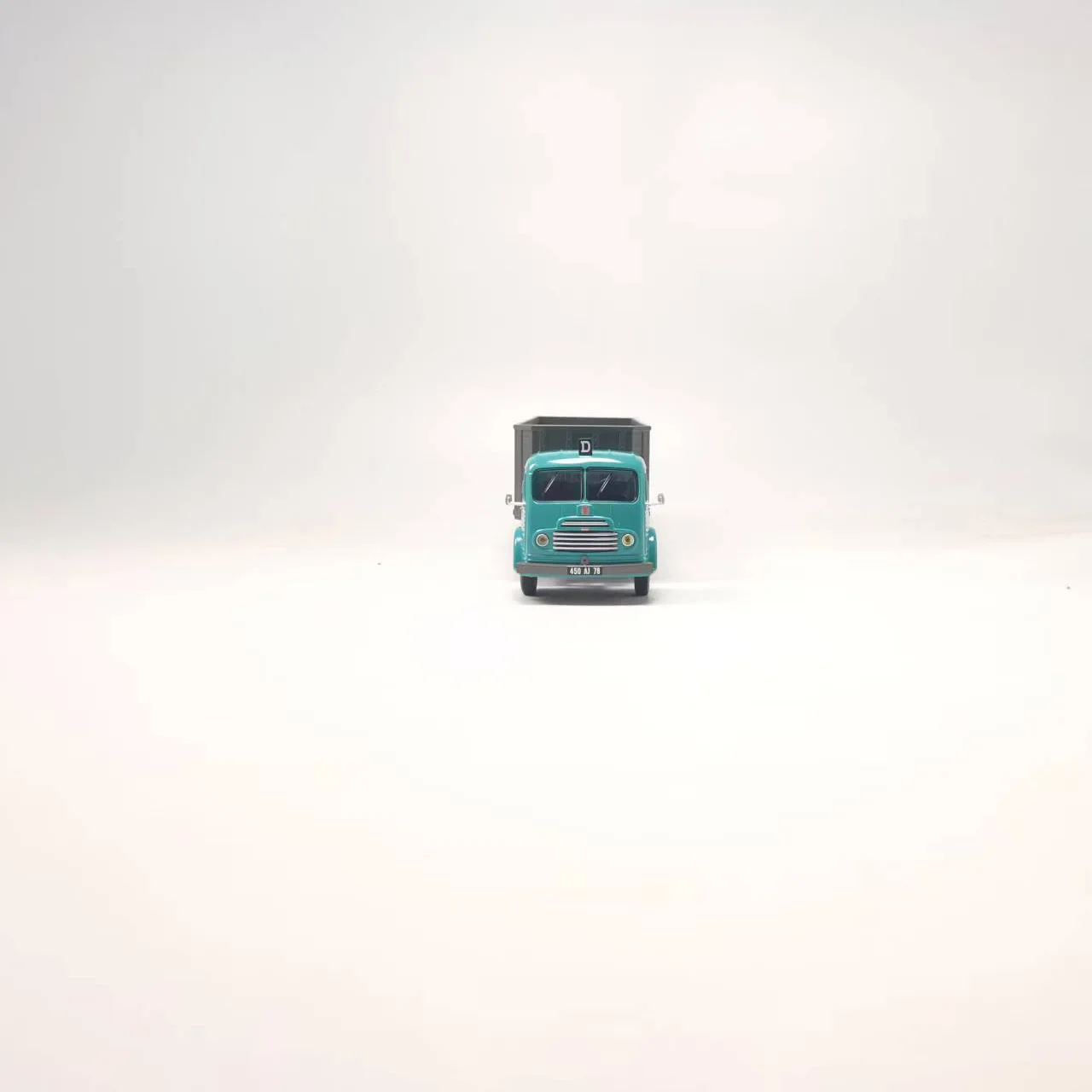 Experience a nostalgic journey with this meticulously crafted die-cast model of the Ford RAF Tractor Truck. Exhibiting a bright aqua cab and vintage design, this collectible captures the essence of mid-20th-century freight transportation. The detailed grille, sculpted doors, and classic front headlights elevate its realism, making it an attractive display piece. Its neutral gray cargo container with textured panel lines further enhances the vintage appeal. Although it features a broken rearview mirror and paint imperfections due to long storage, these flaws add character and authenticity, emphasizing its collectible nature. Perfect for display, gifting, or hobby collection, this model brings a touch of history into your environment with stylish, aged charm.