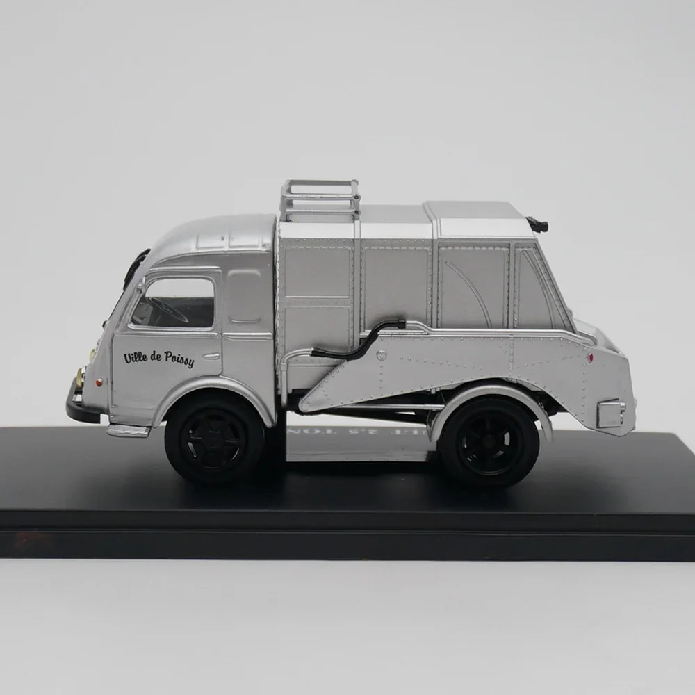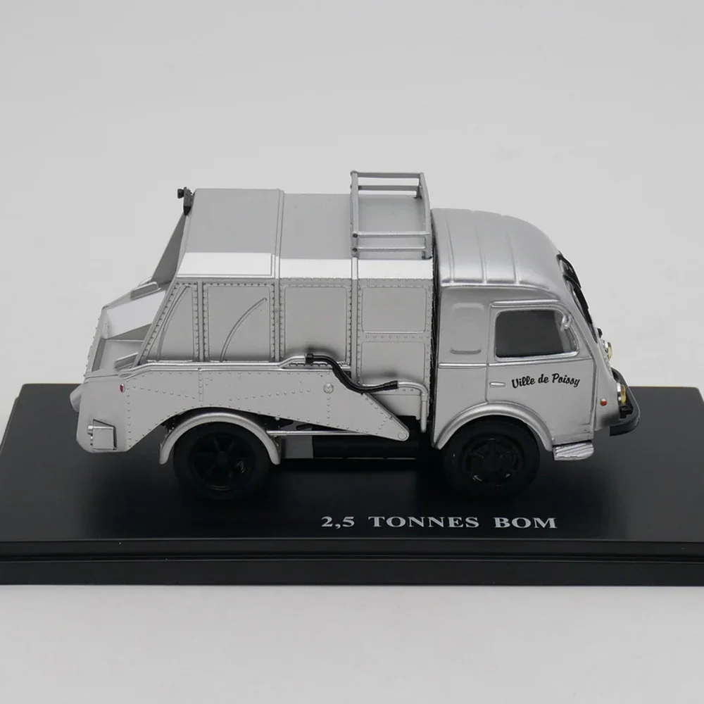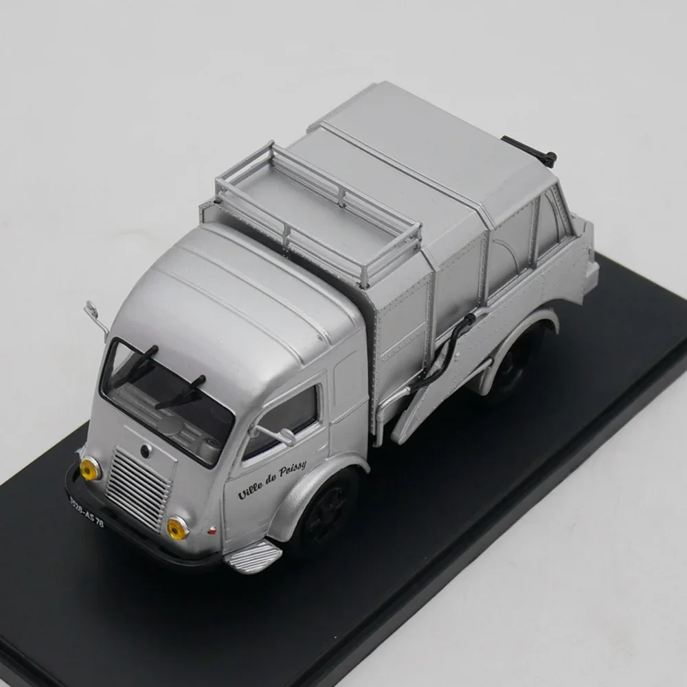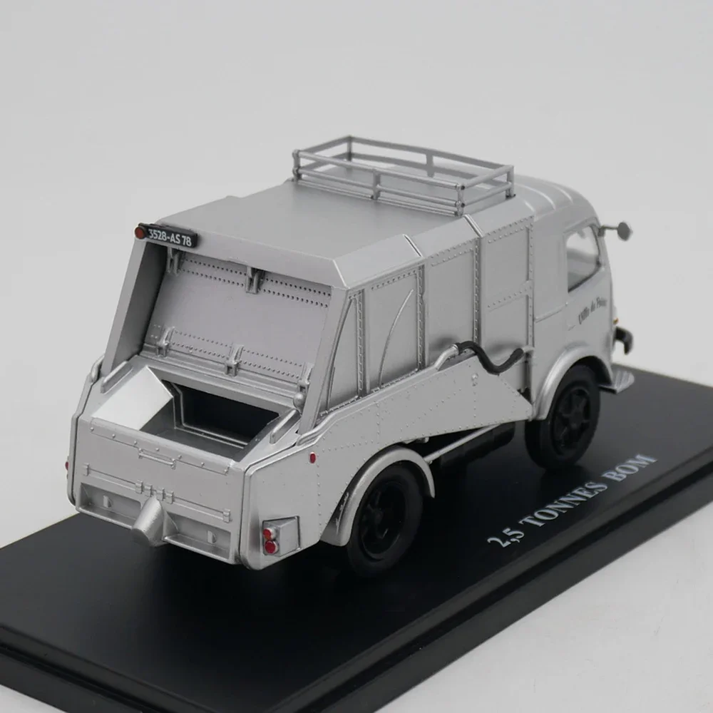 Experience the charm of this meticulously crafted miniature of the garbage transfer truck, scaled at 1:43. Measuring approximately 12 centimeters long, this model exudes realism with its sleek, metallic silver finish, highlighting the timeless design of vintage utility vehicles. The rounded cab features clear plastic windshields with tiny black wipers, horizontal grille slats, and small yellow headlights, complemented by a subtle red indicator light. The boxy cargo area displays detailed panel lines and a slight rear slope with hydraulic-like mechanical features, adding to its authentic appearance. The black rubber tires on realistic wheels complete the compact yet detailed construction. This collectible serves as a perfect static decoration or hobby display for enthusiasts alike, elevating any collection or workspace.