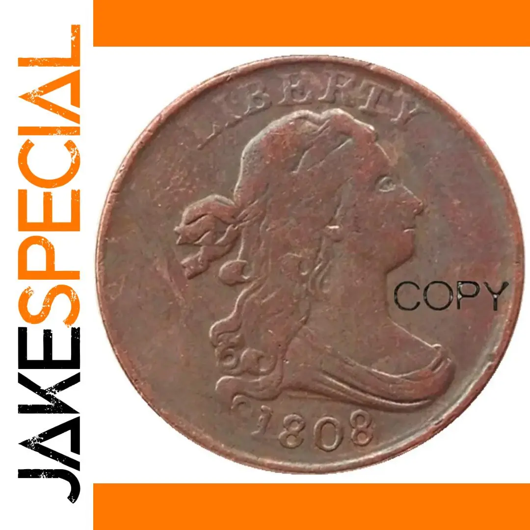 - Accurately reproduces the 1808 Draped Bust Half Cent design with detailed Liberty profile and engraved inscriptions for authentic vintage appeal.