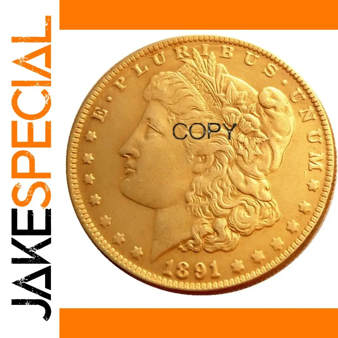 Experience a handcrafted replica of the 1891 Morgan coin, expertly designed with a vintage and nostalgic aesthetic inspired by classic furniture. This coin features a detailed profile of Lady Liberty facing left, with flowing curls, a feathered headband adorned with floral motifs, and an intricate beaded border around the rim. Its shiny, reflective gold surface highlights fine craftsmanship, while patriotic symbols like 13 stars and the year 1891 evoke historic pride. Perfect for collectors and enthusiasts, this coin combines retro elegance with a timeless patriotic theme, creating a unique piece that captures the spirit of old-world craftsmanship and historical charm.