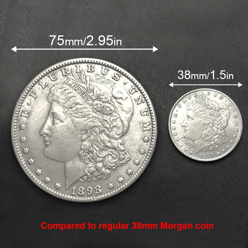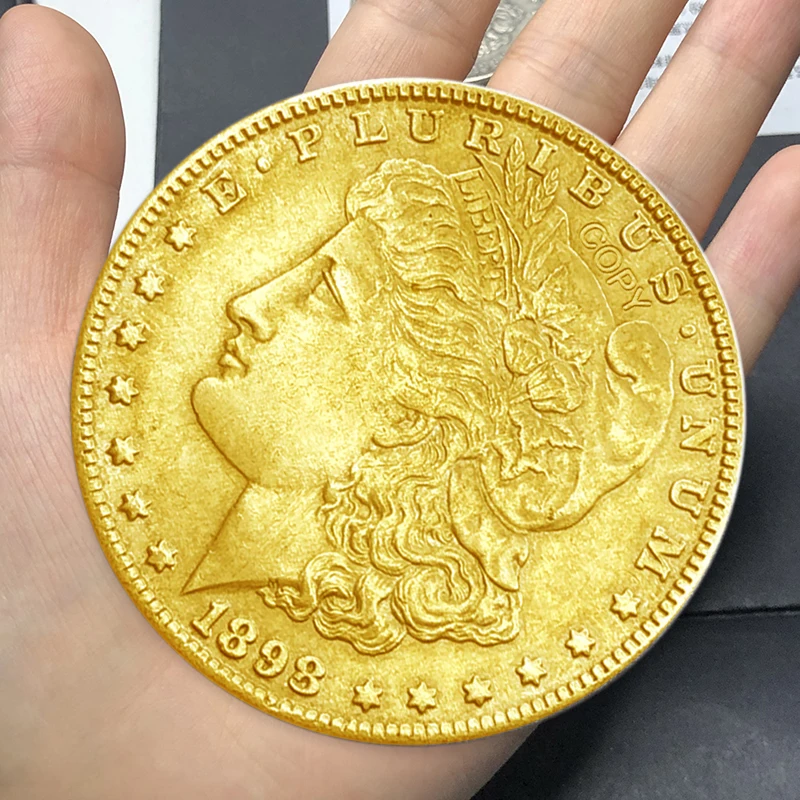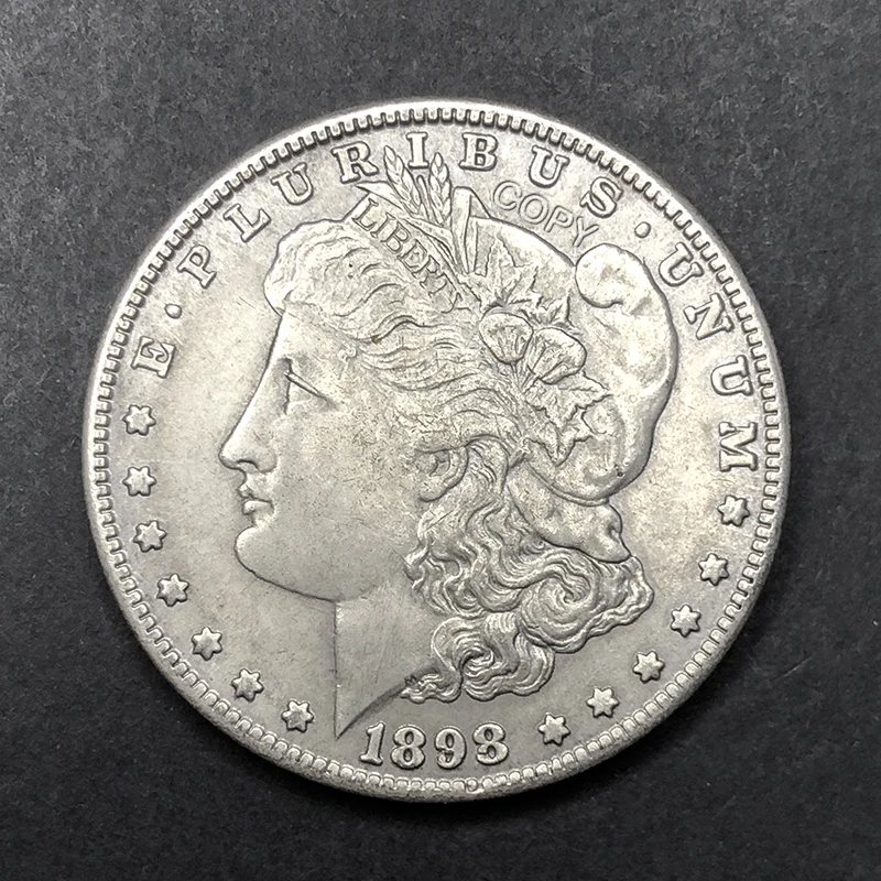 Step into history with this beautifully crafted 75mm vintage-inspired 1898 replica. Made entirely from high-quality copper, it boasts a warm gold or silver finish completed with an aged patina, giving it an authentic antique look. The intricate relief features Lady Liberty’s profile, with flowing, curly hair and precisely carved facial features, capturing the spirit of 1898. The design includes the inscription “E PLURIBUS UNUM” at the top, the year “1898” below Lady Liberty, and small raised stars evenly spaced along the rim, mimicking original minting. The textured reeded edges add tactile authenticity and vintage charm. Each piece reflects careful craftsmanship with subtle variations and tarnishing, making it a unique collectible or decorative accent that embodies timeless elegance.