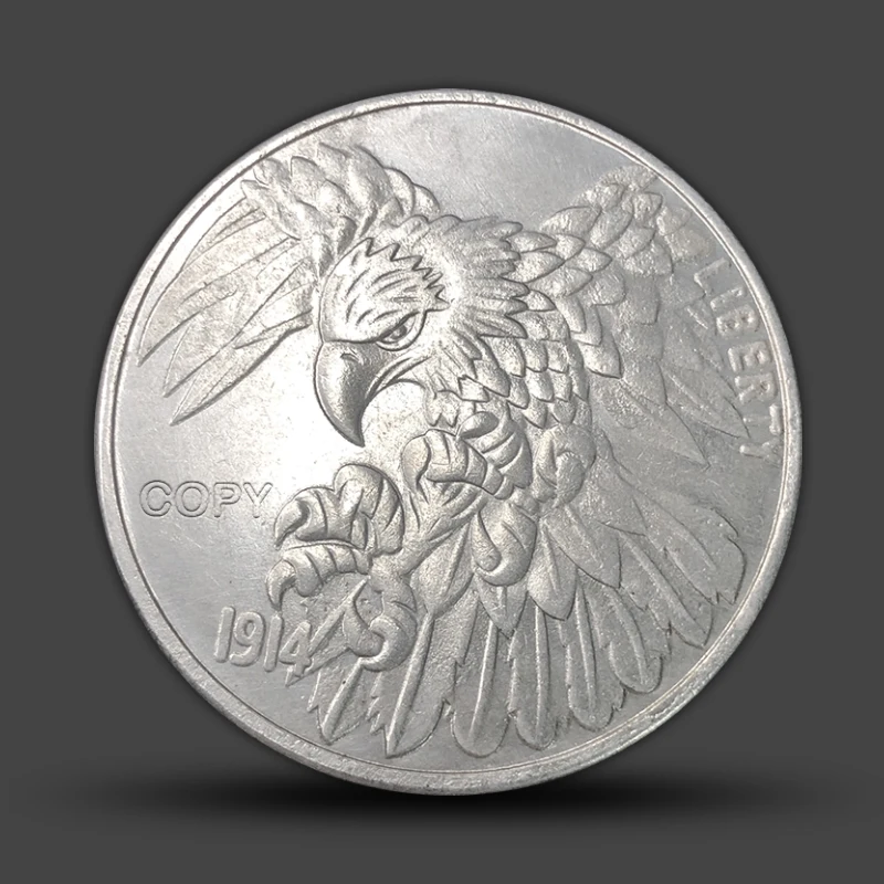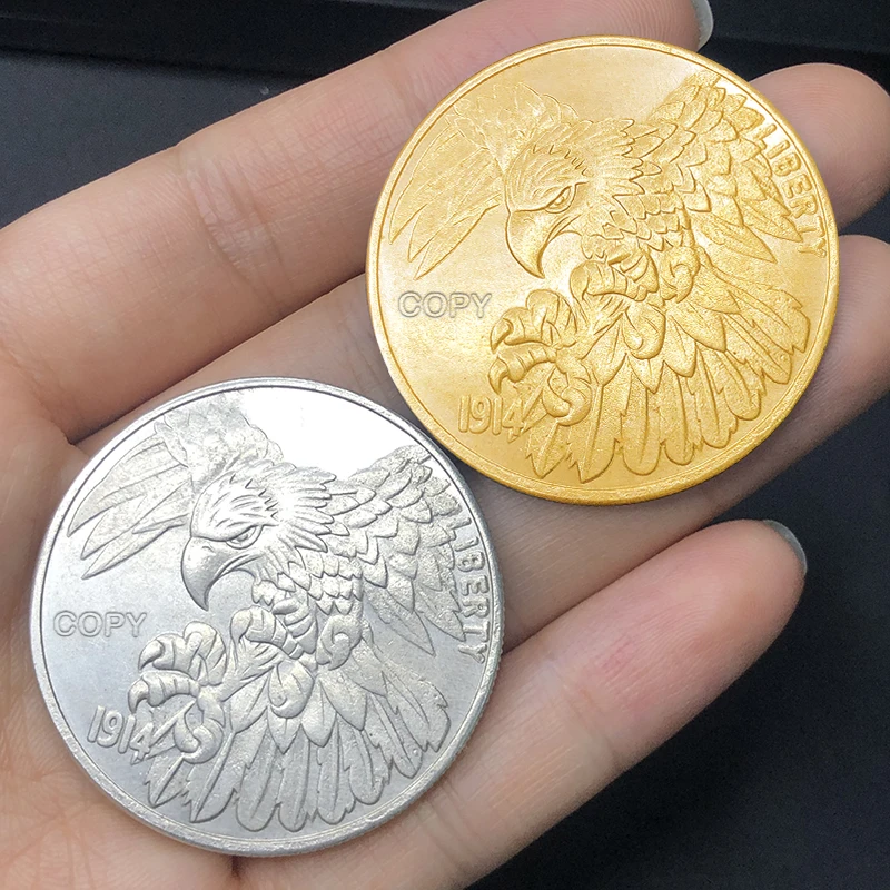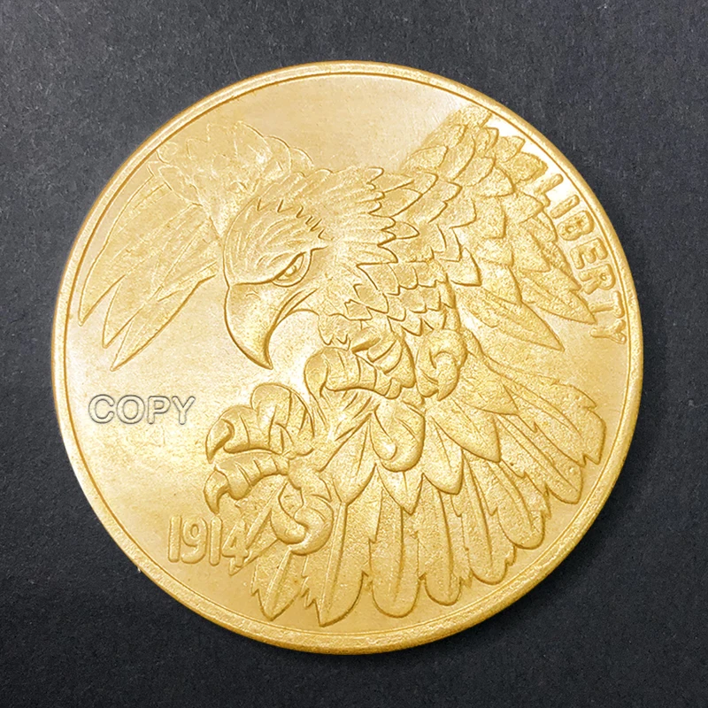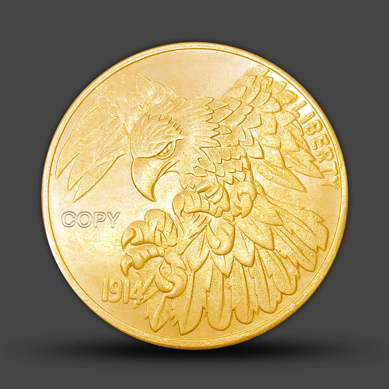 This vintage 1914 Eagle Hobo Coin features a 38mm copper construction, available in polished gold and matte silver finishes. The coin showcases a meticulously engraved spreading-wing eagle with detailed featherwork, regional US motifs, and the year “1914.” Its smooth, raised rim highlights fine craftsmanship and intricate design, making it a durable and visually stunning collectible. Perfect for display, gifting, or adding a nostalgic touch to your collection, this coin embodies timeless Americana with its rich detail and classic vintage appeal. A must-have for enthusiasts of historical and regional American memorabilia.