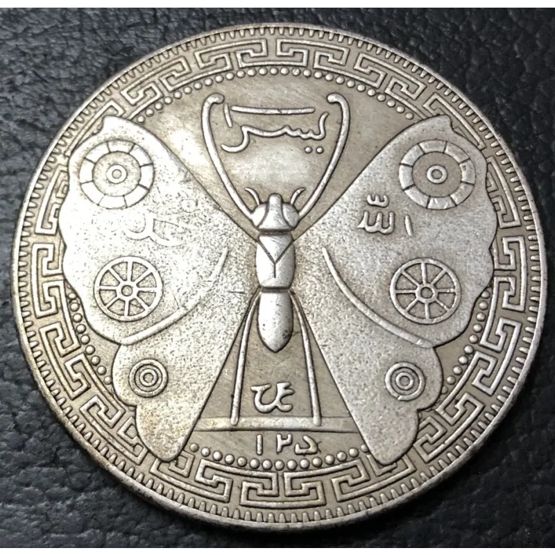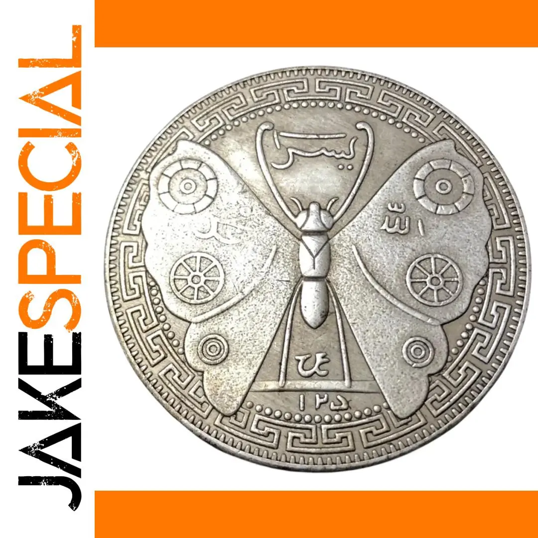 Step into history with this beautifully crafted 1919 Indonesia Coin replica. Measuring 45mm in diameter, it boasts an antique-inspired design that captures the essence of early 20th-century coinage. The metal surface features a weathered, vintage finish, giving it a truly aged and authentic look. The coin's central motif presents a detailed butterfly with outstretched wings, decorated with intricate engravings and ornate patterns, highlighting craftsmanship and historical artistry. Surrounding the butterfly are decorative circular and geometric elements that enhance its antique appeal, while the rim showcases a Greek key or meander pattern, encasing the entire design in elegance. Perfect for display, this replica is a stunning ornament for enthusiasts of vintage artifacts and coin collectors alike.