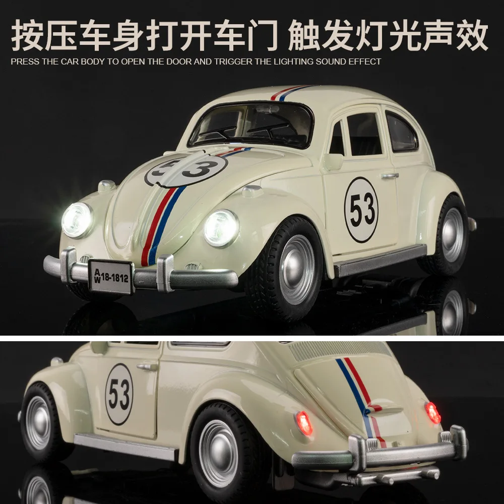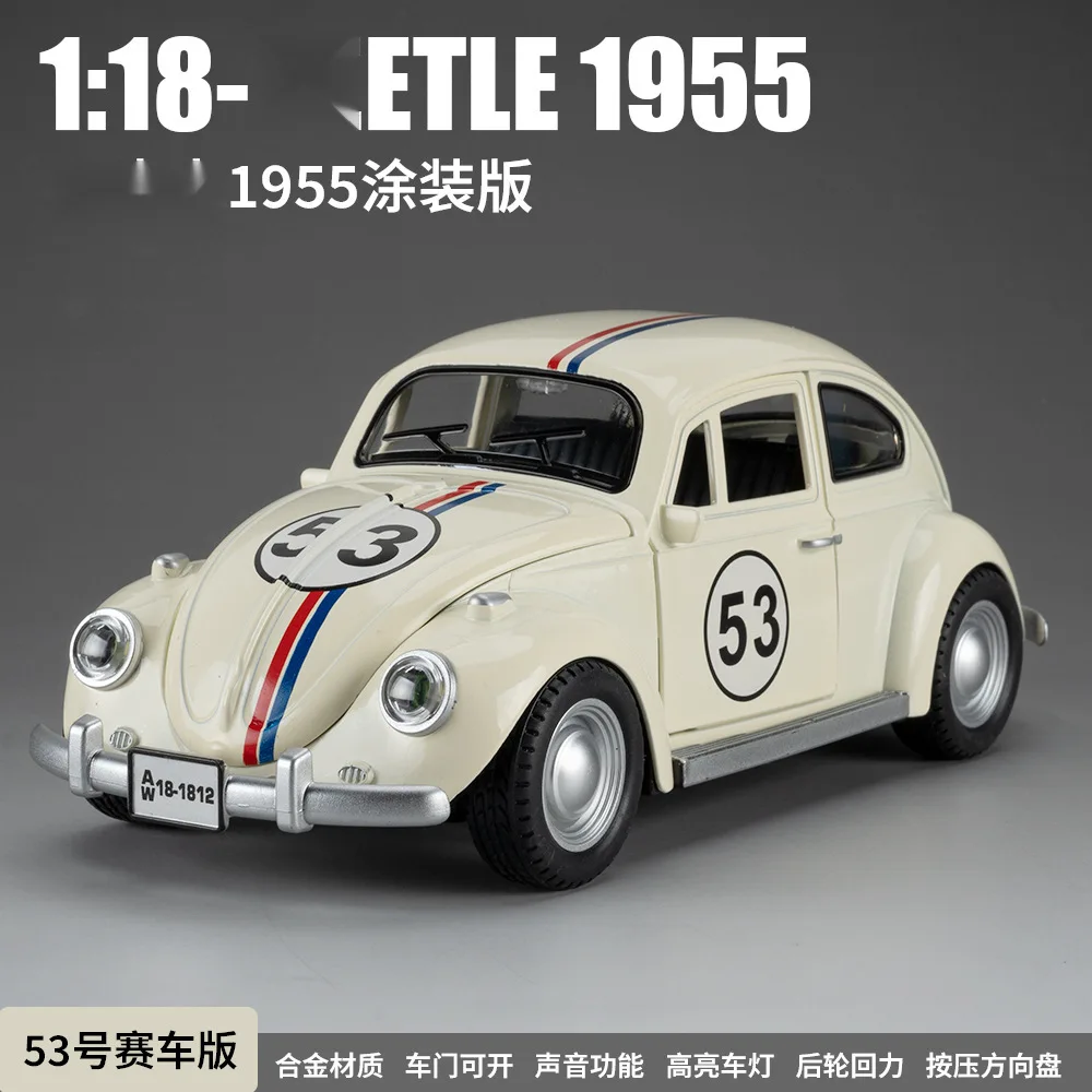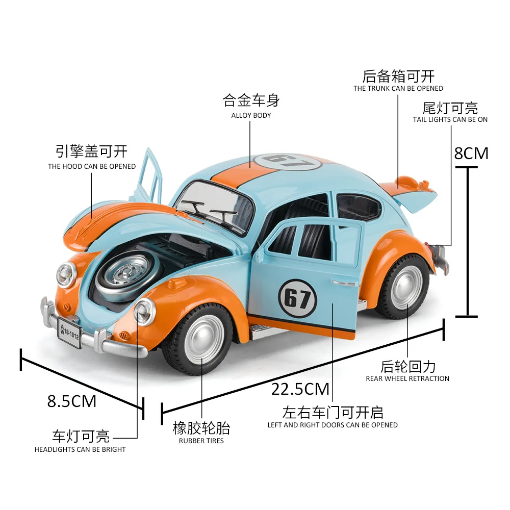 - Elegant vintage design with smooth, rounded alloy body, detailed with iconic features of the 1955 Beetle, capturing true classic automotive aesthetics for collectors and enthusiasts.