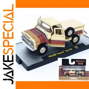This detailed diecast 1:64 scale Stepside Truck 4×4 model, approximately 7 cm long, is crafted from alloy and designed for adult collectors. It features a vintage beige body accented with vibrant red, navy blue, and gold stripes, a stepped side bed, and metallic silver front grille and bumper. The model’s black rubber tires with silver hubcaps are rotatable, enhancing display realism. With static, non-electric design, it showcases intricate craftsmanship, a minimal interior visible through the clear windshield, and proportionate side mirrors. Perfect for display, gifting, or collection, this handcrafted replica embodies vintage charm and timeless style, with a few slight imperfections as part of its artisanal charm.