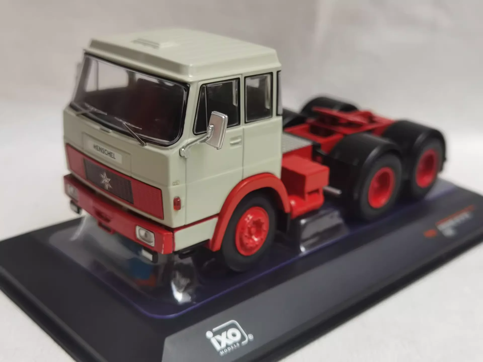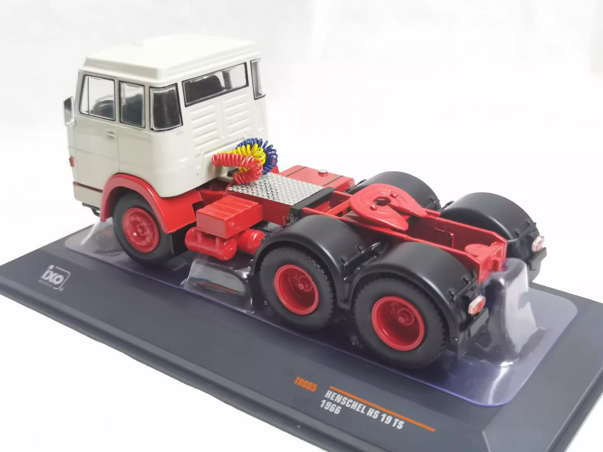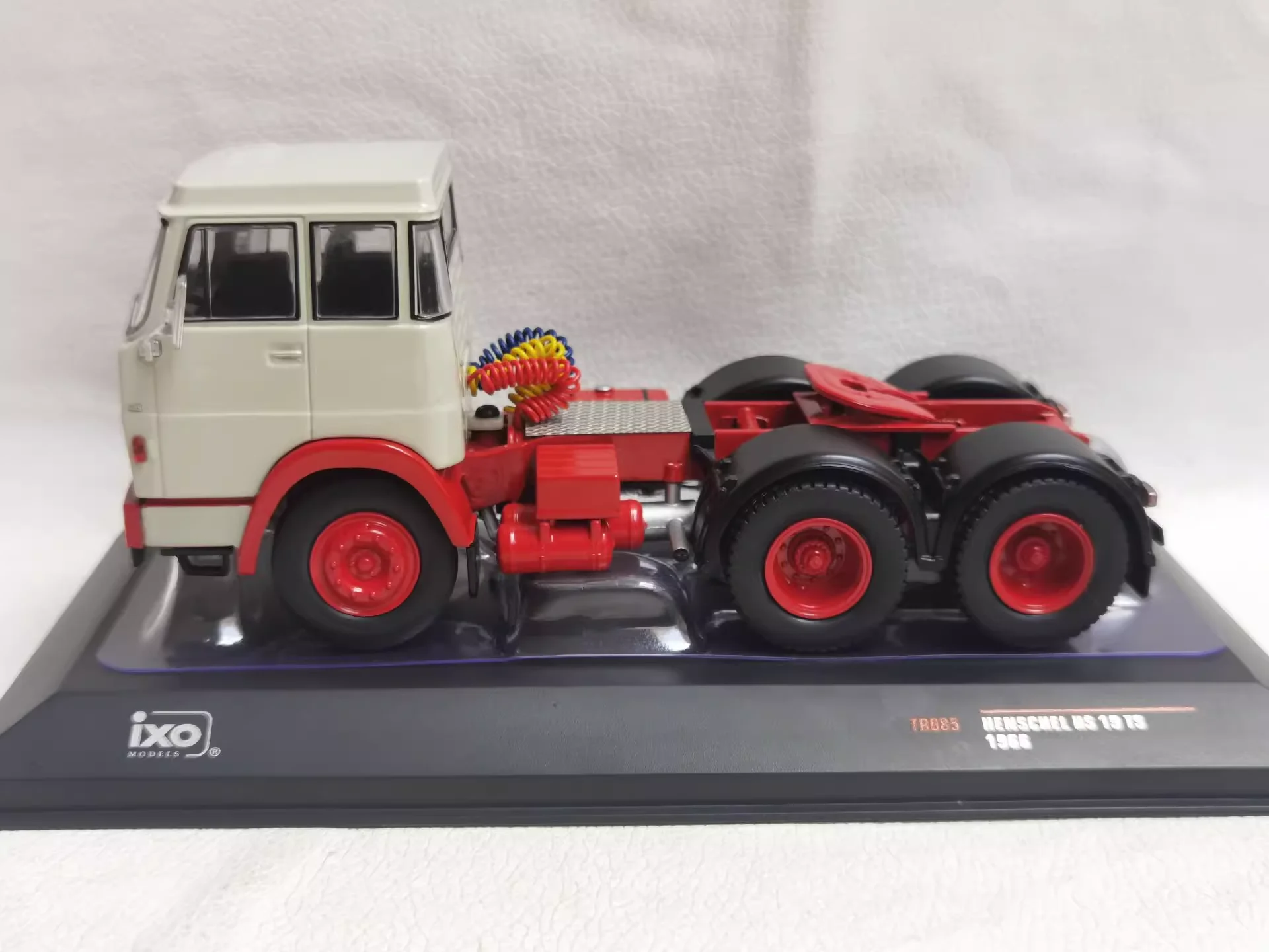 Discover this detailed 1/43 scale diecast replica of a 1966 trailer head truck, crafted from alloys and plastics, showcasing authentic vintage design with a beige/off-white cab, red bumper, wheel arches, and chassis. Finely detailed with horizontal grille elements, silver side mirrors, and realistic treaded tires with red rims, it captures the nostalgic charm of 1960s trucks. Slight paint defect on the roof adds character to this collectible model, measuring approximately 1:43 in proportion. Perfect for display, study, or gifting, this non-electric, adult-oriented ornament emphasizes craftsmanship and historical accuracy, making it an ideal addition to any collection with attention to detail and vintage style.