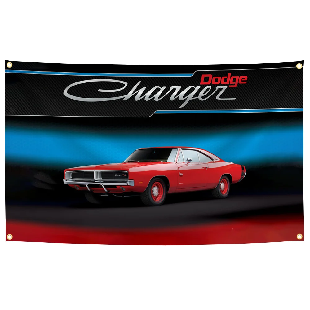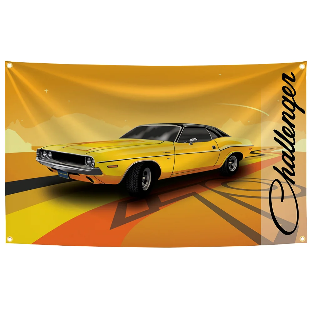 Imagine upgrading your garage or man cave with this stunning vintage-inspired decoration. Measuring 90 x 150 cm and crafted from high-quality polyester with double penetration craft, this flag captures the bold spirit of 1970s American muscle cars. The vibrant digital print features a striking blue 1969 Plymouth Barracuda Z/28, emphasizing sleek lines, a prominent grille, and round headlights. The design highlights nostalgic automotive charm, complemented by detailed smaller banners of a cheerful red Fiat 500 and a lively blue Mini. Equipped with four corner holes and a durable plastic flagpole, this decorative tapestry is easy to hang, adding authentic retro style to your space. It’s perfect for any car enthusiast’s collection or garage display.