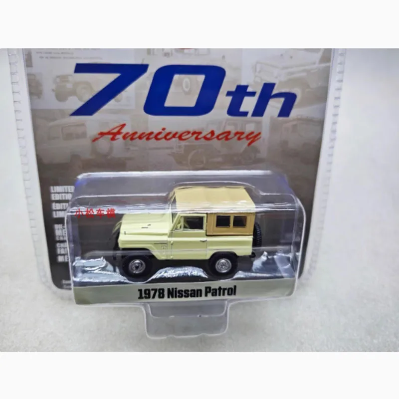 Experience the timeless charm of this meticulously crafted diecast model of the 1978 Nissan Patrol, created to celebrate the 70th Anniversary Edition. With an authentic vintage design, this 1:64 scale replica showcases a rugged, boxy silhouette in a subtle beige or cream hue, accented by black bumper, grille, and tires for a realistic appearance. The detailed exterior includes a prominent front grille, round headlights, a raised hood, and a textured soft-top roof, capturing the essence of vintage utility SUVs. Its durable alloy construction makes it a perfect display piece or thoughtful gift for enthusiasts and collectors. Visualize your collection enhanced with this finely detailed, striking miniature.
