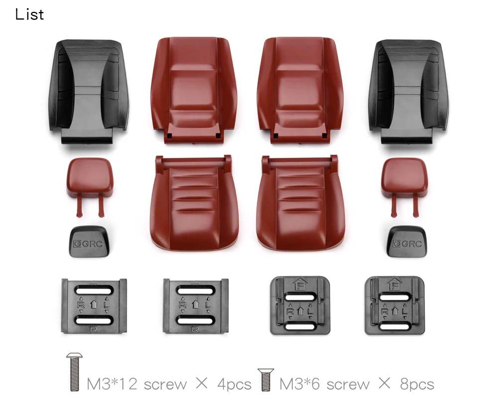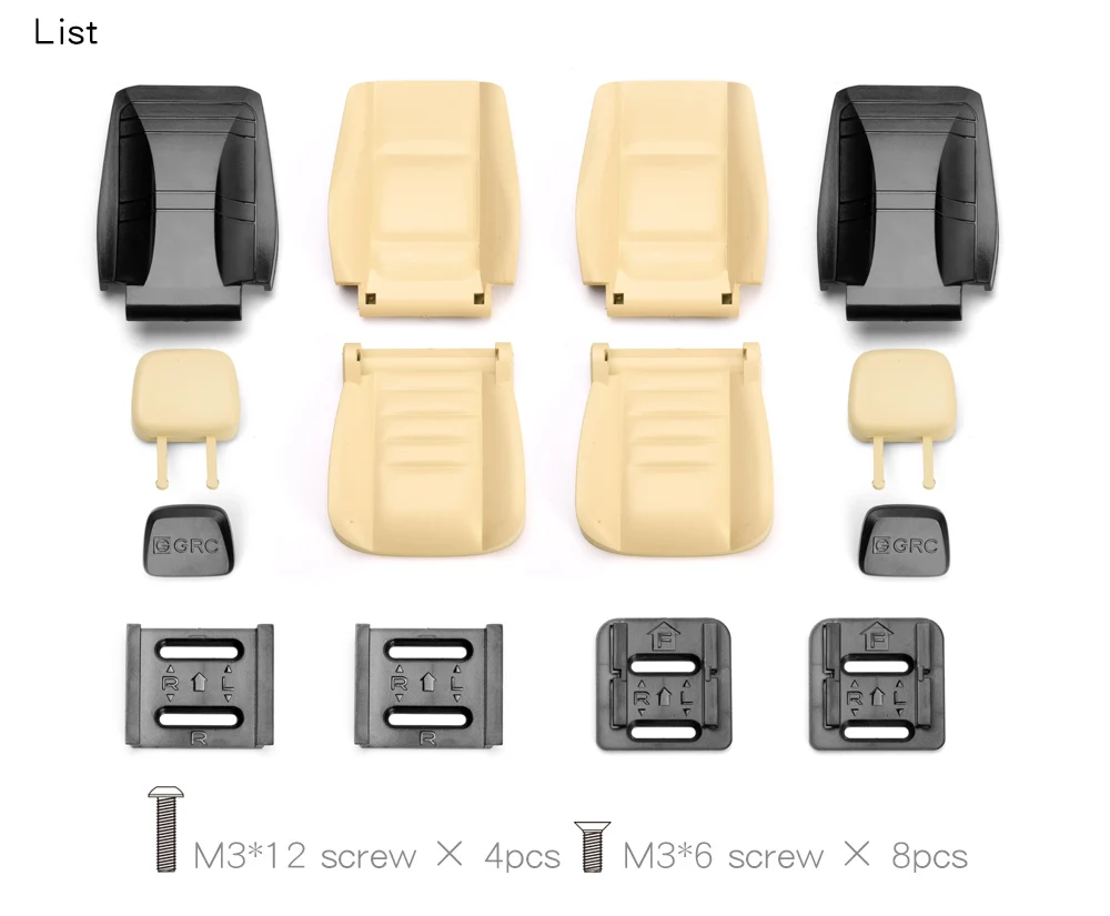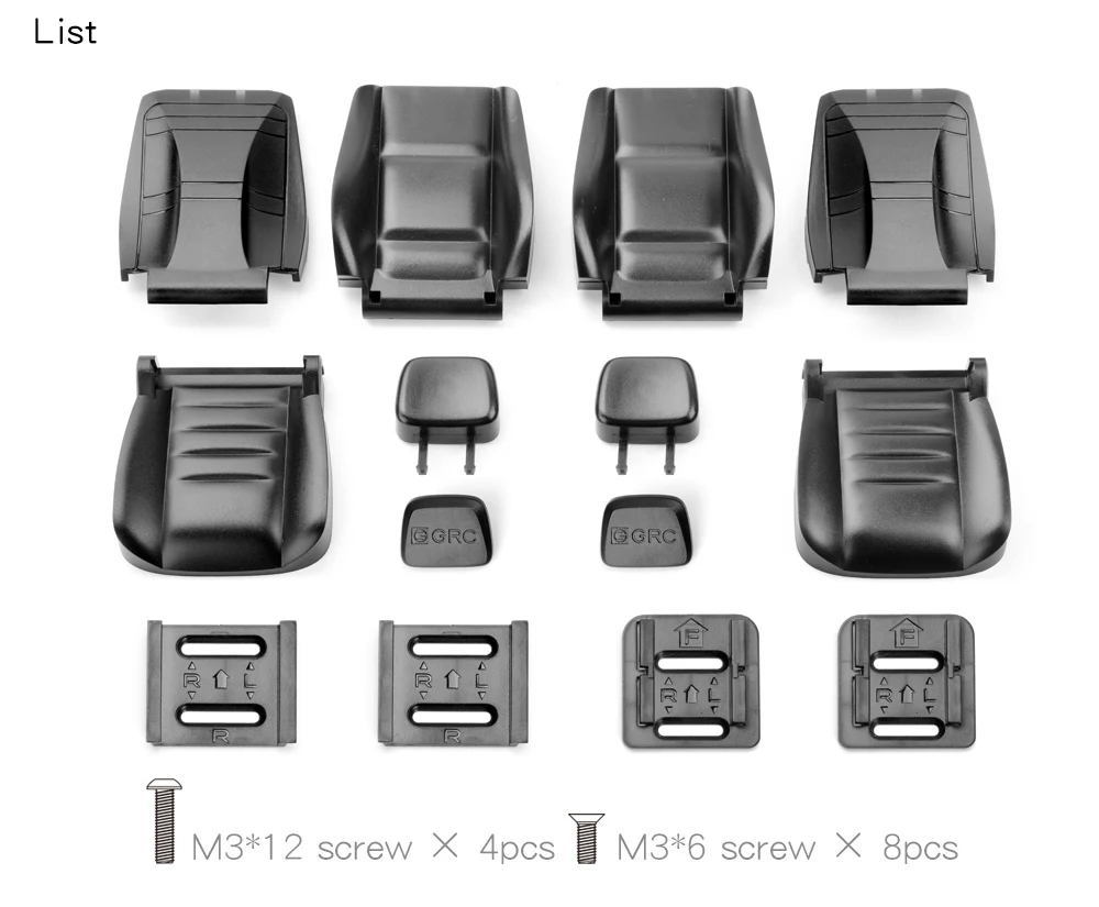 Step into a world of nostalgic style with this set of this vintage-inspired RC seats by GRC, crafted specifically for 1/10 scale RC crawlers like TRX4, Defender, Bronco, Blazer, and SCX10III. Designed to replicate the authentic 1979 Ford seats, these seats offer a perfect combination of retro aesthetics and modern durability. Made of high-quality PC plastic, they feature detailed vertical stitching and authentic curvature that evoke classic automotive elegance. The adjustable backrest allows you to customize the fit, enhancing your RC vehicle’s interior realism. Whether upgrading or customizing your RC crawler, these seats bring a refined, vintage touch to your model, making your repair and modification projects more impressive with each detail.