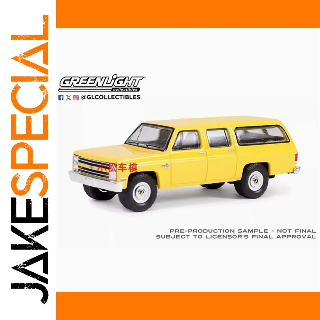 Experience the charm of the mid-1980s with this highly detailed 1/64 scale model of the legendary 1986 GMC Suburban, produced by GreenLight Collectibles. Crafted from alloy and plastic, this miniature showcases a vibrant yellow finish that captures the essence of classic American SUVs. Its boxy and utilitarian style features true-to-life details including a chrome grille with horizontal bars, rectangular headlights, and a robust bumper. The model’s clean, angular lines reflect the period’s design, with eight evenly spaced side windows with black frames and subtly molded door handles. At the rear, a large rectangular window and red tail lights add authenticity. Perfect for display, this collectible promises to bring nostalgia and admiration to any collection. Bring home a piece of automotive history today.