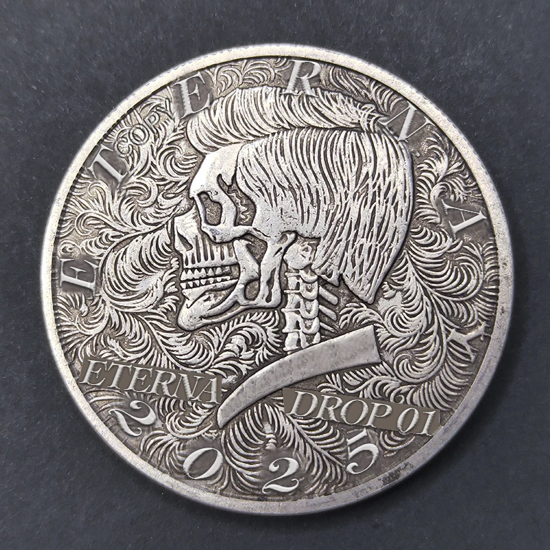 Step into history with this meticulously crafted vintage-style collectible coin. Made from high-quality copper, it features a detailed double-sided design that portrays the iconic 2025 US Lincoln Skull motif. Its aged, weathered finish gives it a nostalgic and patriotic feel, perfect for display or adding a unique touch to your collection. With a 38mm diameter, the coin is finely embossed with intricate carved details, including a realistic human skull with flowing textured hair, surrounded by ornate swirling patterns. Its timeless aesthetic captures the essence of classic Americana while serving as an eye-catching decorative piece. Designed for enthusiasts, this coin invites you to own a durable, historically inspired artifact that reflects patriotism and vintage charm.