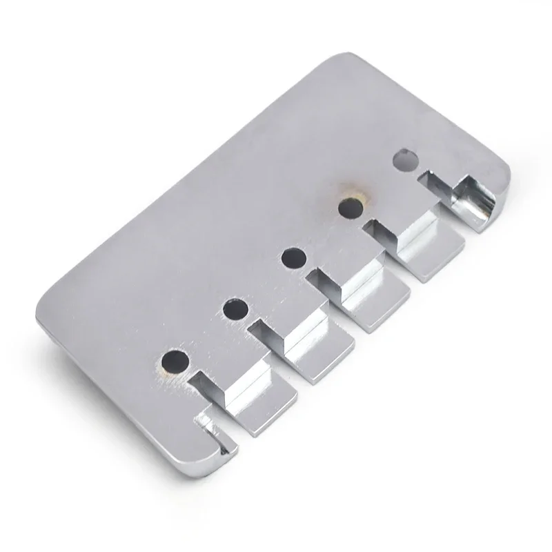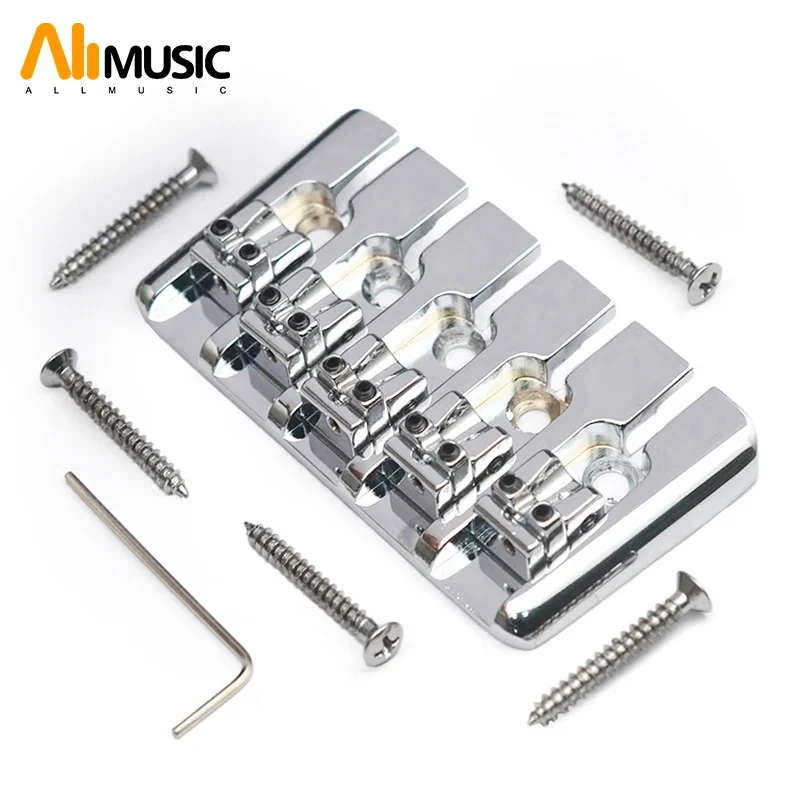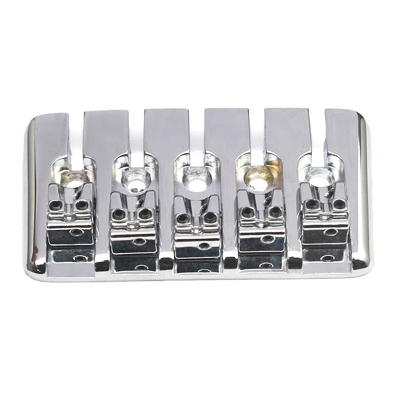 Enhance your 5-string bass guitar with this vintage-style metal bridge, measuring 95×49.5mm with a 16.5mm bottom through-string spacing. Featuring a durable locked saddle design, it offers stability and precise string positioning. Available in sleek black, luxurious gold, and reflective chrome, this fixed bridge combines industrial strength with timeless aesthetic appeal. The package includes one bridge, five mounting screws, and a wrench for easy installation. Its robust construction ensures it can handle the tension of your bass strings, providing reliable performance and a professional look for your instrument.