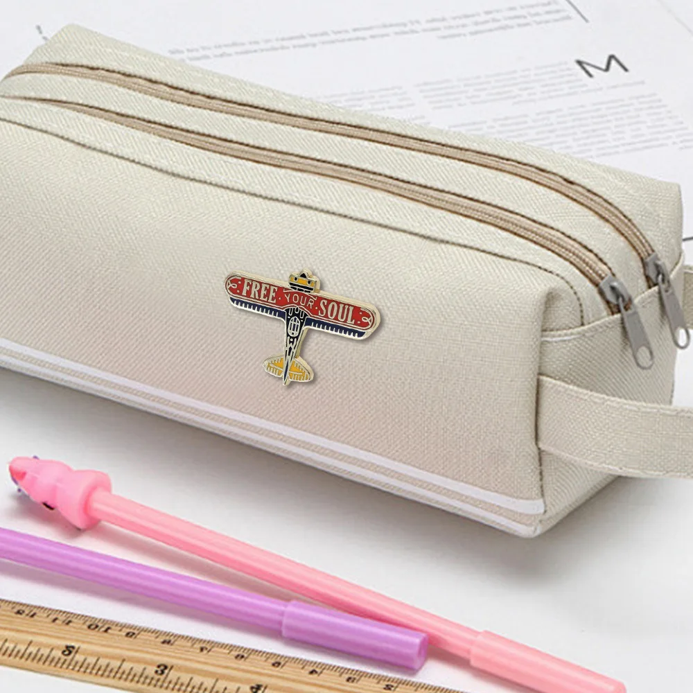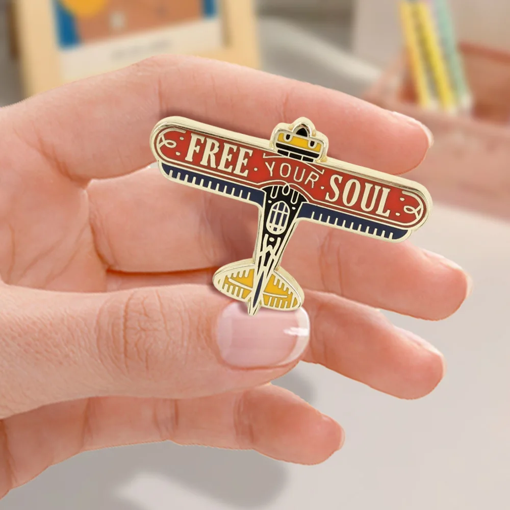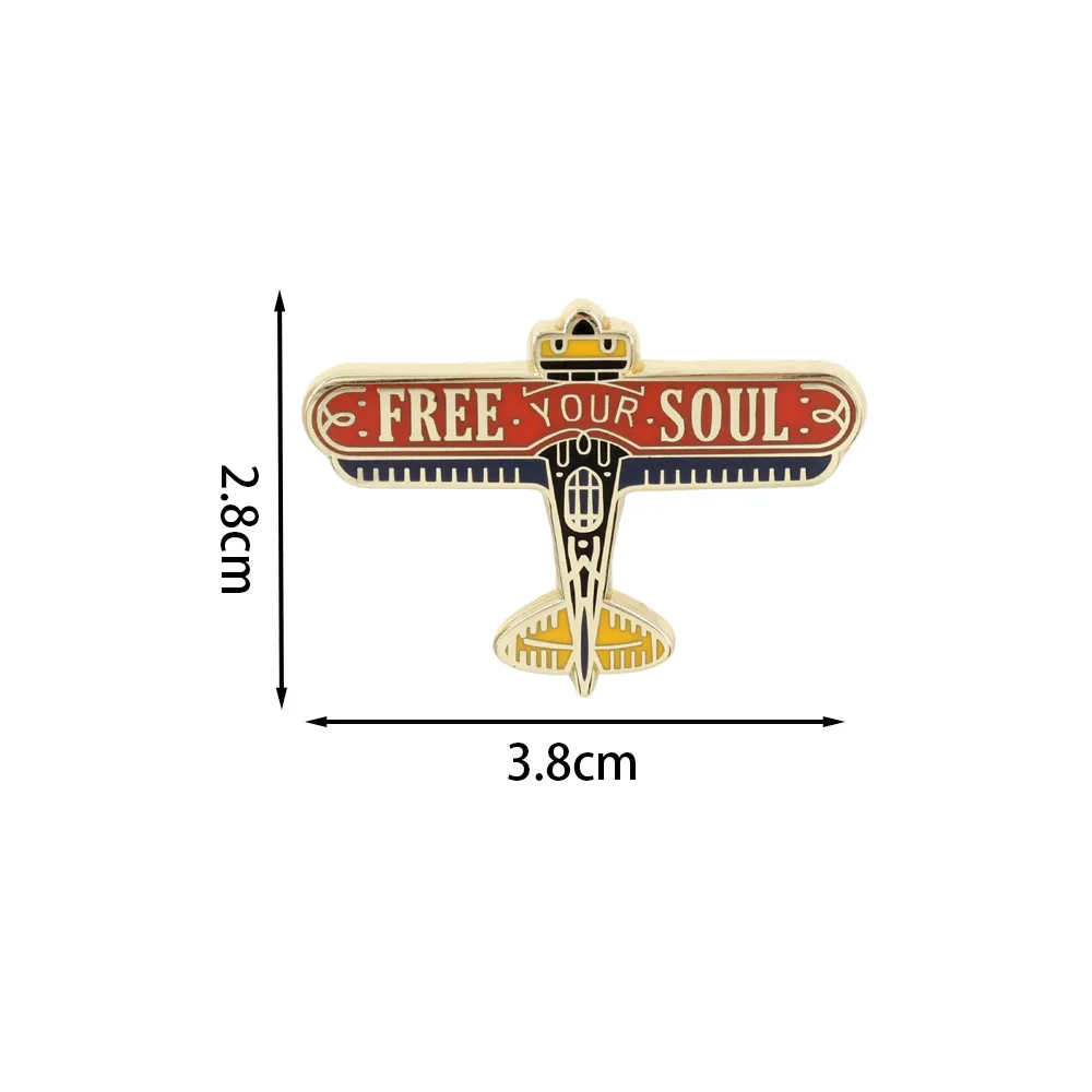 This Creative Airplane Collar Enamel Metal Pin is the perfect accessory to add flair to your outfits. With its polished gold-colored alloy finish, this pin transforms a retro aesthetic into a modern statement piece. Shaped like a vintage airplane, it features wings that proudly display “FREE YOUR SOUL” in white against a vibrant red background. Detailed with enchanting blue and yellow accents, this pin is designed for unisex appeal, making it a delightful choice for everyone. Whether you attach it to your jacket, backpack, or hat, it brings a touch of aviation-inspired charm to any ensemble. You'll love how this unique pin enhances your personal style and showcases your individuality.
