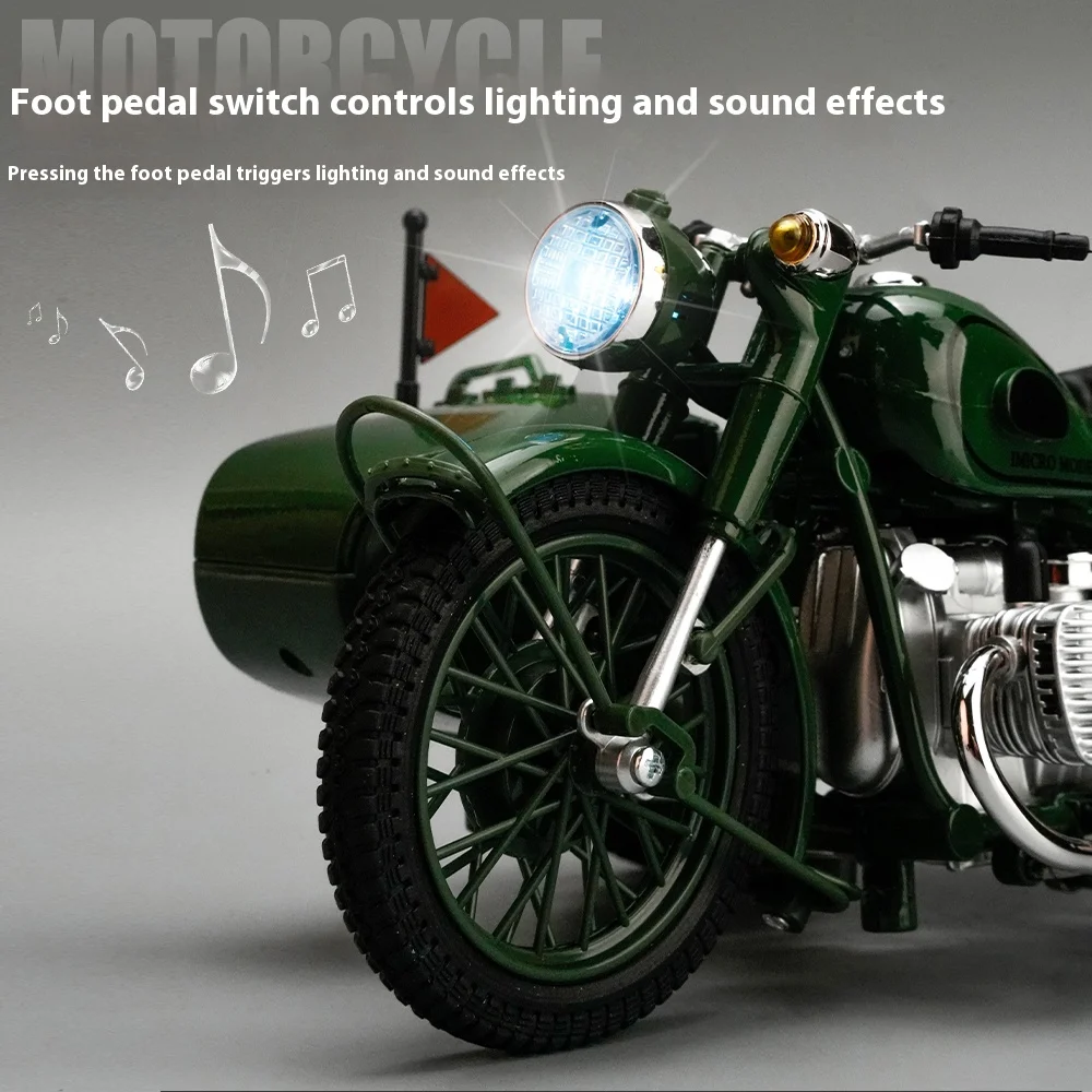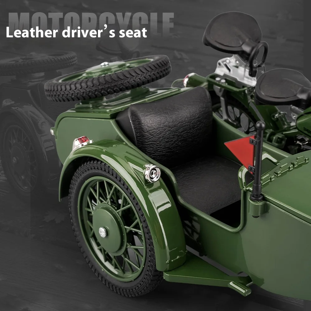 Don't miss the chance to own this stunning replica—perfect for displaying on shelves, desks, or within your collection of military or retro memorabilia. Imagine the conversations it will inspire when visitors admire its craftsmanship and nostalgic charm. This model offers both aesthetic appeal and a touch of history, bringing vintage style right into your home or office. Add it to your collection now and enjoy a lasting reminder of timeless motorcycle design, crafted with passion and precision for adult collectors who appreciate fine, miniature craftsmanship.