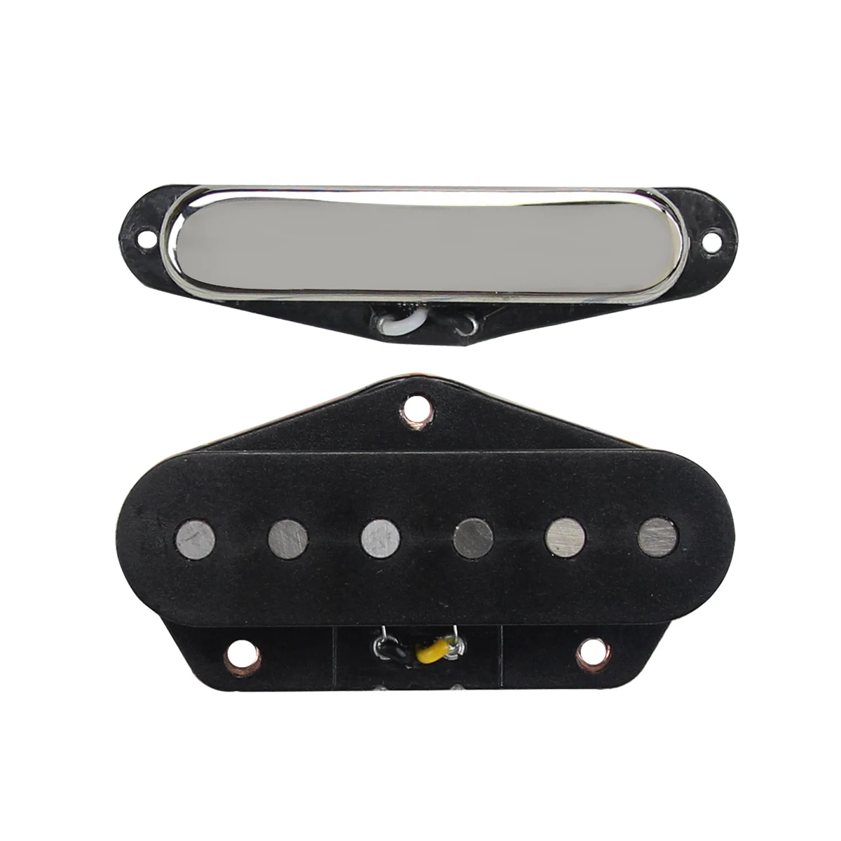 Imagine elevating your electric guitar sound with this expertly crafted set of pickups. Designed for TL style or similar guitars, these pickups combine classic aesthetics with modern performance. The neck pickup boasts a sleek, chrome-plated cover that is smooth and reflective, exuding a polished look. Its matching black ABS plastic bobbin complements the aesthetics perfectly. The bridge pickup features a vibrant red copper base, adding warmth and industrial charm, with exposed pole pieces under a black rubber covering. Both pickups are wax potted for feedback suppression, ensuring clear, noise-free sound. These pickups will seamlessly fit your guitar, delivering powerful tone and authentic vintage vibe. You’ll love how they enhance your playing experience, providing balanced response and rich musicality.