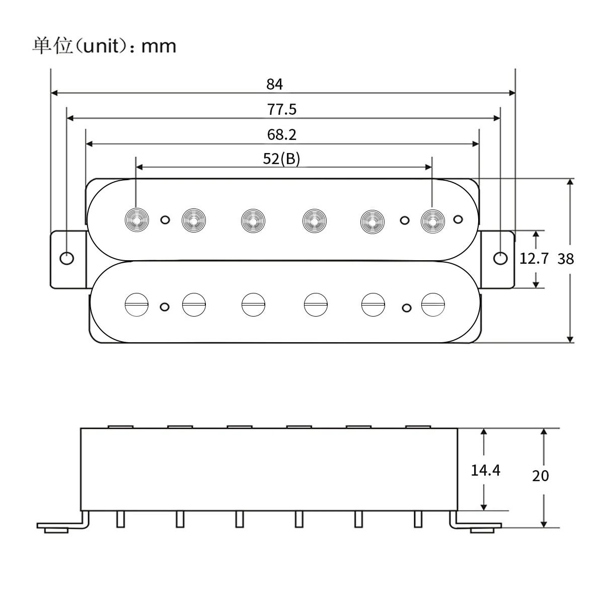 - Neck and middle pickups feature staggered pole pieces, fiber plate bobbins, and ABS covers, delivering a bright, articulate sound with resistance from 6K to 7K ohms.