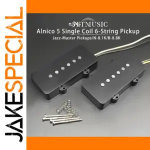 Enhance your guitar’s tone with this Alnico 5 Vintage Single Coil Jazz-Master Pickup, designed for 6-string electric guitars in both neck and bridge positions. Featuring an Alnico V magnet, flat top pole pieces with 51.15mm pole spacing, and resistance of 8.1KΩ (neck) or 8.8KΩ (bridge), it delivers warm, vintage sounds perfect for jazz or classic styles. The sleek black plastic cover and waxed cloth cable ensure a clean, minimalist look and reliable output. Wax potted to eliminate feedback and noise, it comes with two screws and springs for effortless installation—bringing your guitar’s sound to a new level of clarity and vintage authenticity.