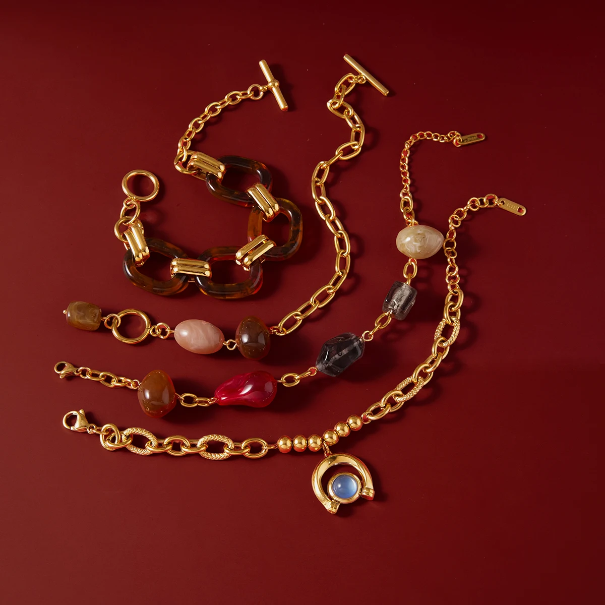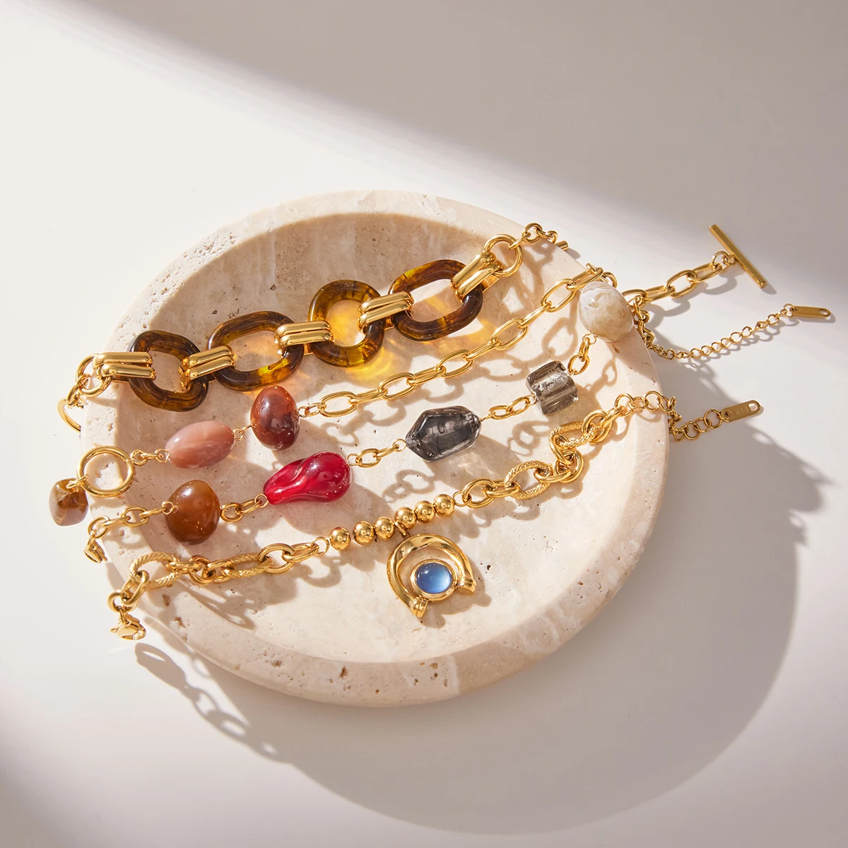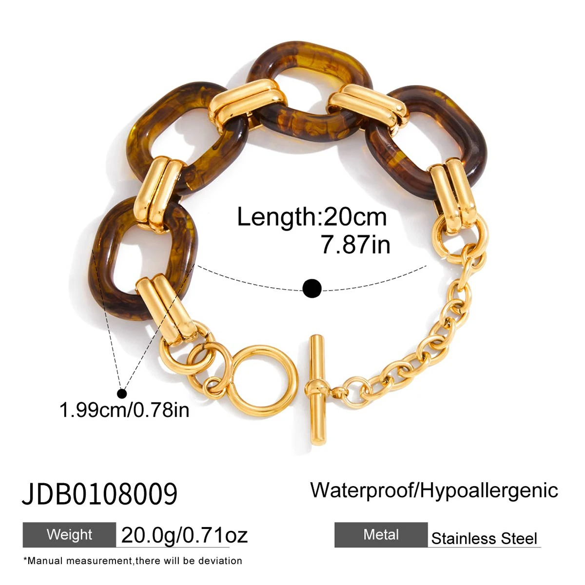 Experience timeless elegance with this vintage-style women's bracelet crafted from durable stainless steel coated in a rich PVD gold finish. The bracelet features an irregular amber resin pendant, giving it a unique handcrafted aesthetic that radiates warmth and sophistication. Its waterproof design ensures lasting beauty, even with daily wear. The link chain with a lobster clasp provides a secure yet easy fastening, making your accessorizing effortless. Whether you're dressing up for a special occasion or adding a stylish touch to your everyday look, this bracelet blends classic charm with modern durability. The versatile charm style complements various outfits, helping you express your personal style confidently. Feel the confidence knowing you own a distinctive, high-quality piece.