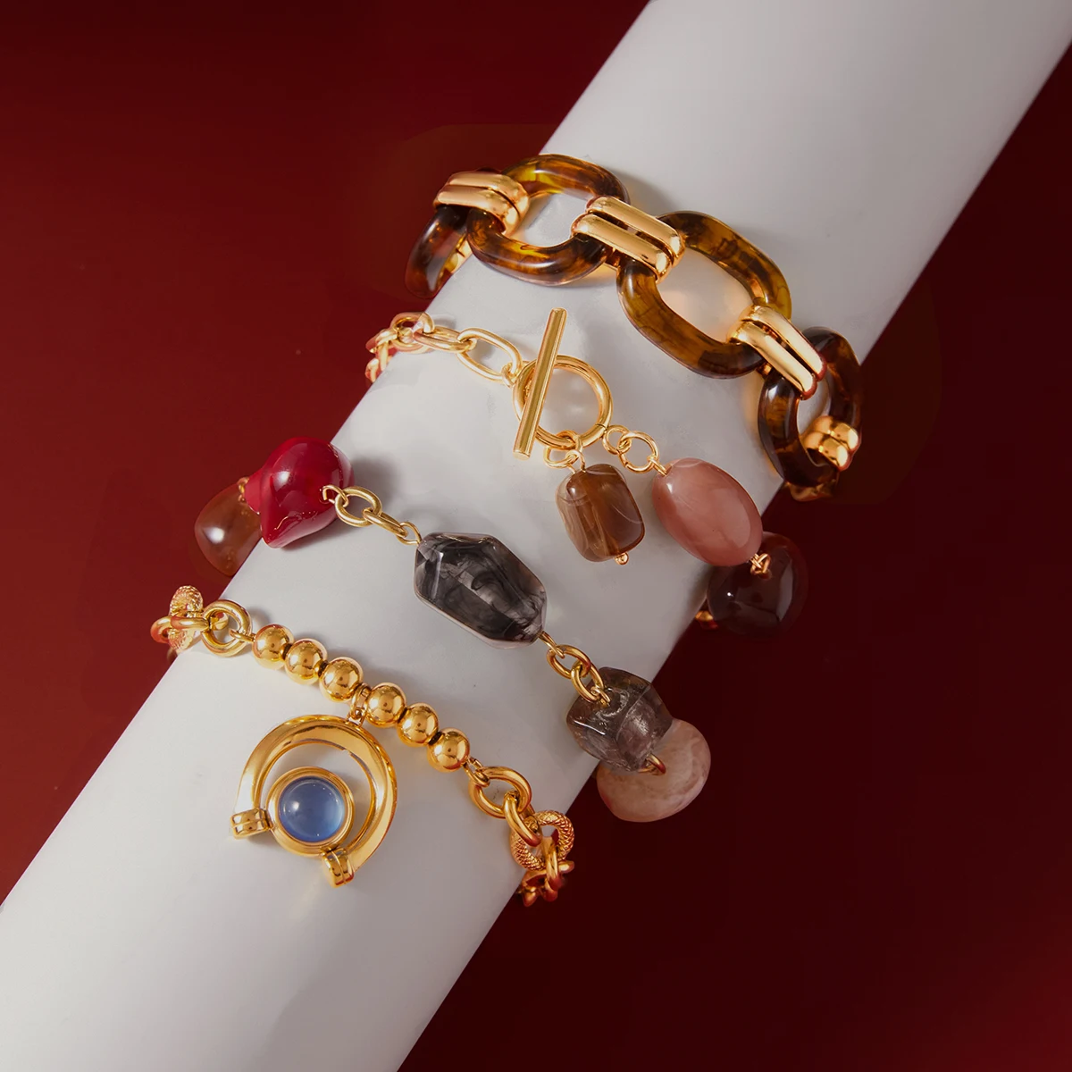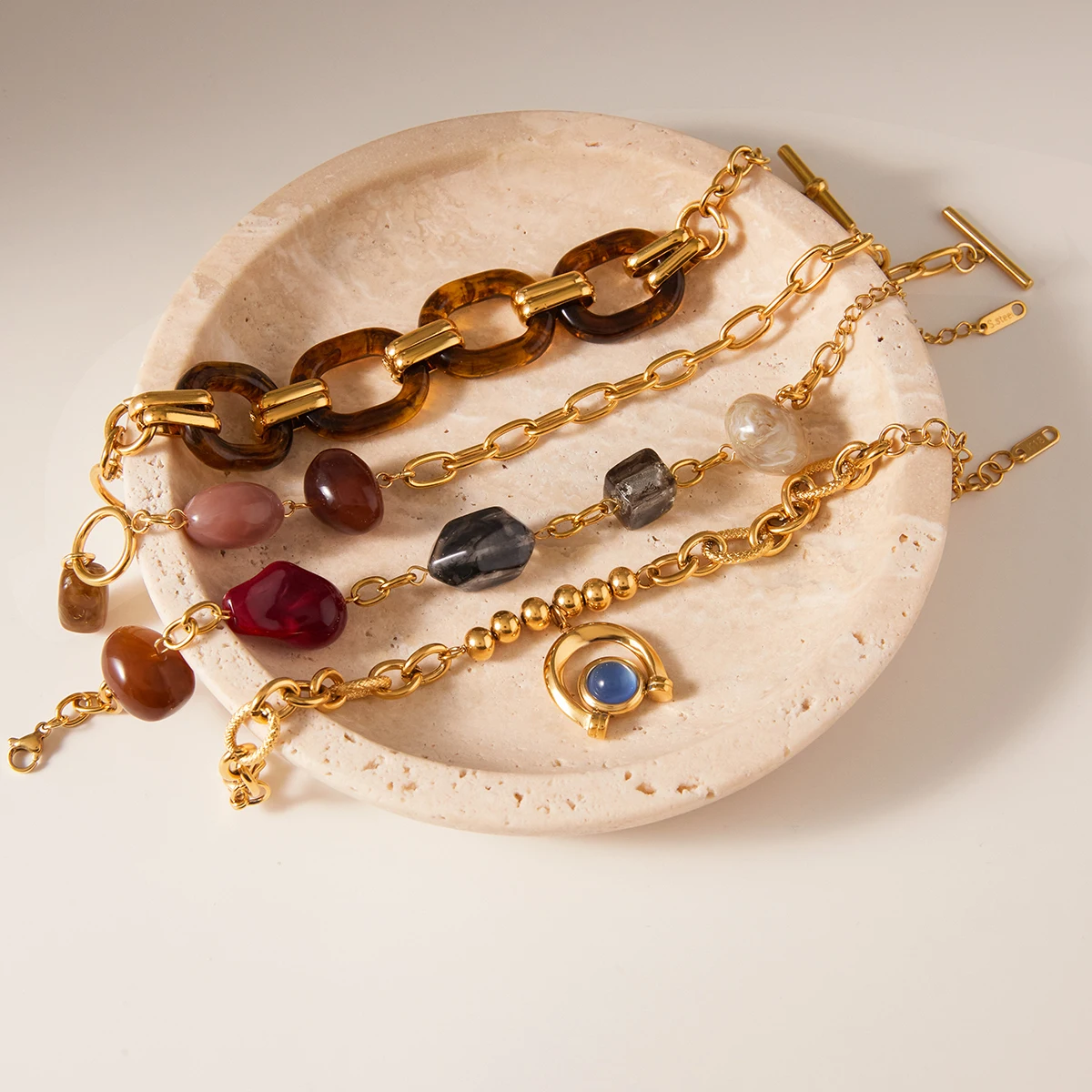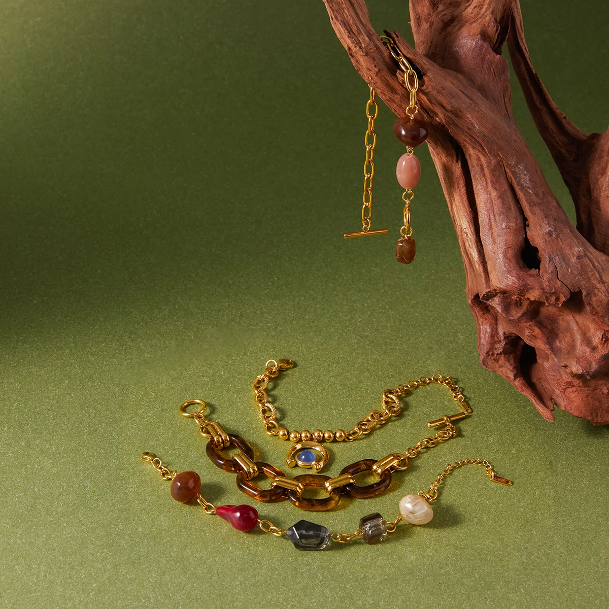 Experience timeless elegance with this vintage-style women's bracelet crafted from durable stainless steel coated in a rich PVD gold finish. The bracelet features an irregular amber resin pendant, giving it a unique handcrafted aesthetic that radiates warmth and sophistication. Its waterproof design ensures lasting beauty, even with daily wear. The link chain with a lobster clasp provides a secure yet easy fastening, making your accessorizing effortless. Whether you're dressing up for a special occasion or adding a stylish touch to your everyday look, this bracelet blends classic charm with modern durability. The versatile charm style complements various outfits, helping you express your personal style confidently. Feel the confidence knowing you own a distinctive, high-quality piece.