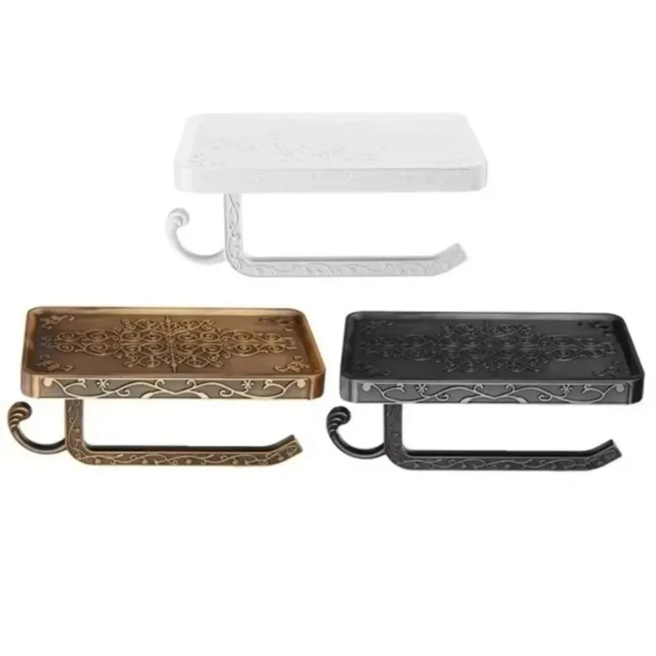 Enhance your bathroom with this vintage-inspired, wall-mounted storage rack combining elegance and functionality. Crafted from durable brass and available in sophisticated gold, black, white, and bronze finishes, this 18.3 x 10 x 9.5 cm unit weighs only 0.23 kg. Its double-tier design seamlessly integrates a toilet paper holder with a convenient shelf for mobile phones, keys, glasses, or small gadgets. Easy to install with complete mounting accessories, this space-saving accessory is perfect for bathrooms, toilets, hotels, or personal use, providing lasting durability while adding an antique charm to your interior.