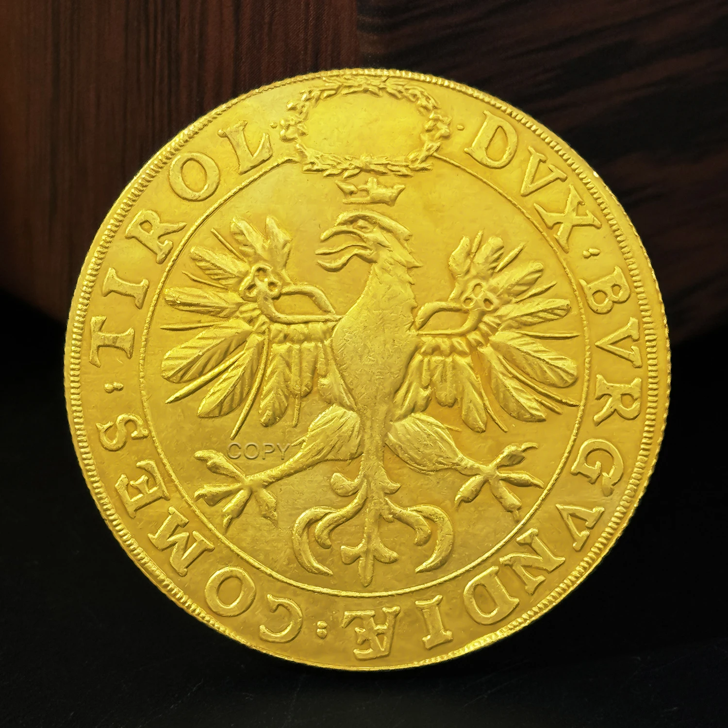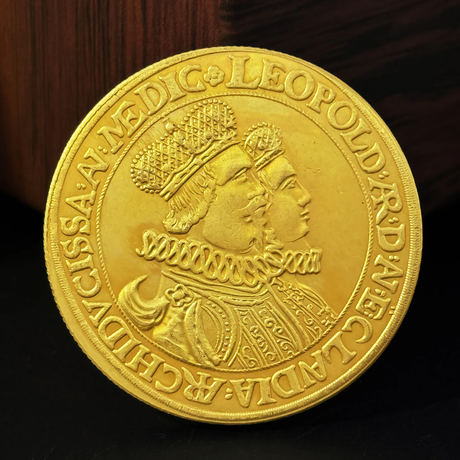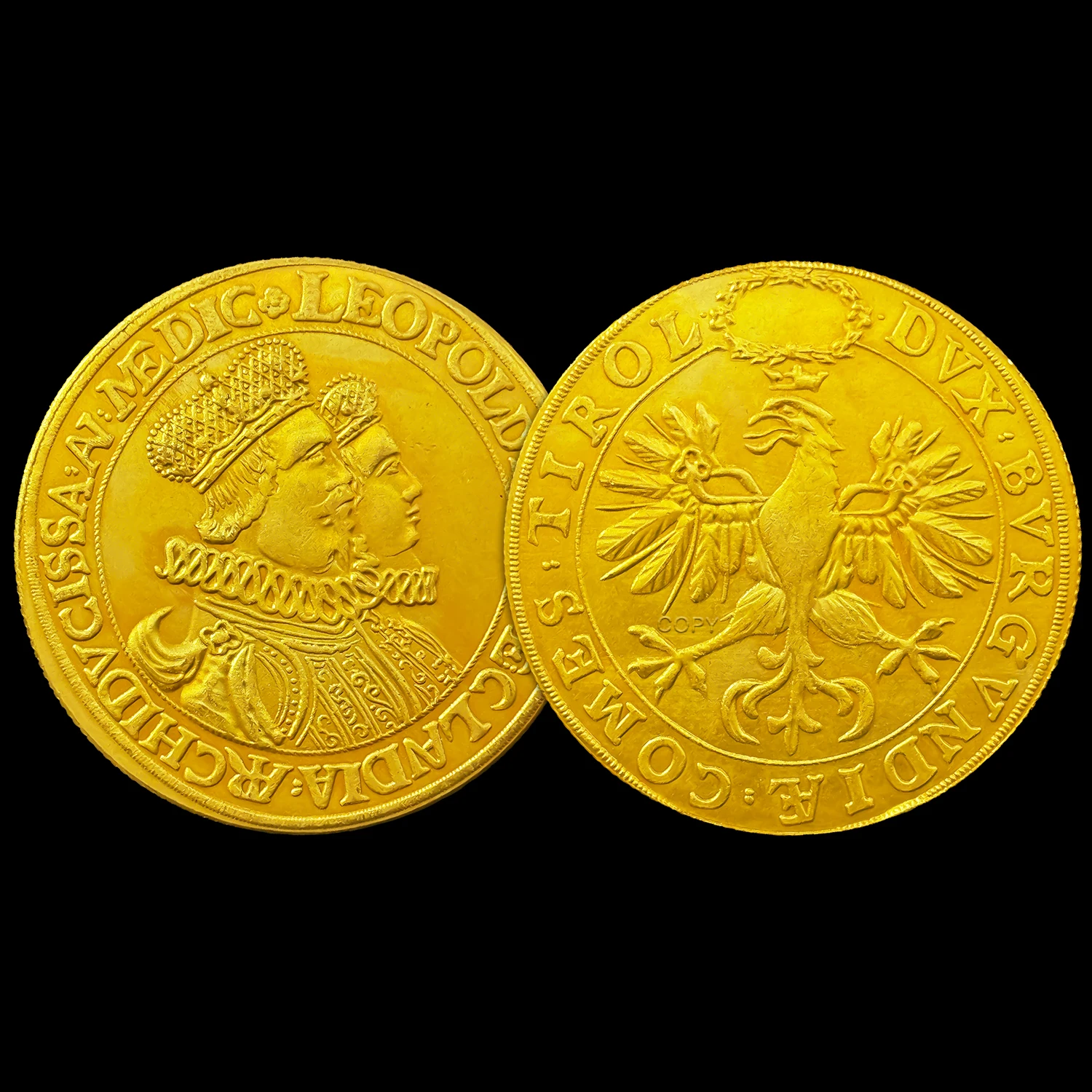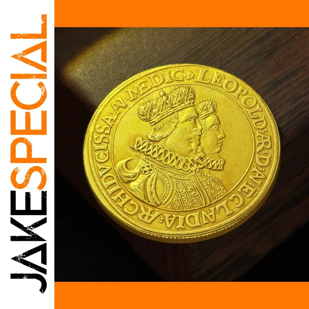 Experience the timeless elegance of this Bavarian Maximilian II 5 Ducat replica coin, measuring approximately 35mm in diameter and crafted from durable copper with a polished, luminous golden finish. Its vintage aesthetic is accentuated by sharply defined relief portraits of Bavarian Maximilian II and his wife in profile, adorned with ornate crowns and intricate clothing. The smooth, glossy surface highlights detailed facial features, hairstyles, and vintage attire, while the finely ridged or reeded edges add a refined touch. Newly made without chemical treatment, this collectible coin combines high-quality craftsmanship and historical charm, making it an ideal decorative or commemorative piece for enthusiasts and collectors.