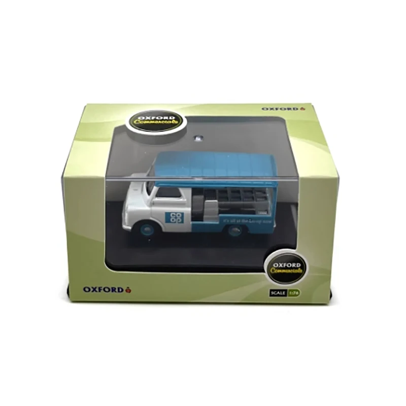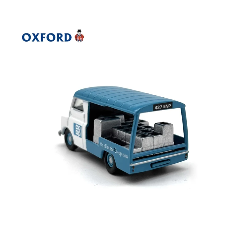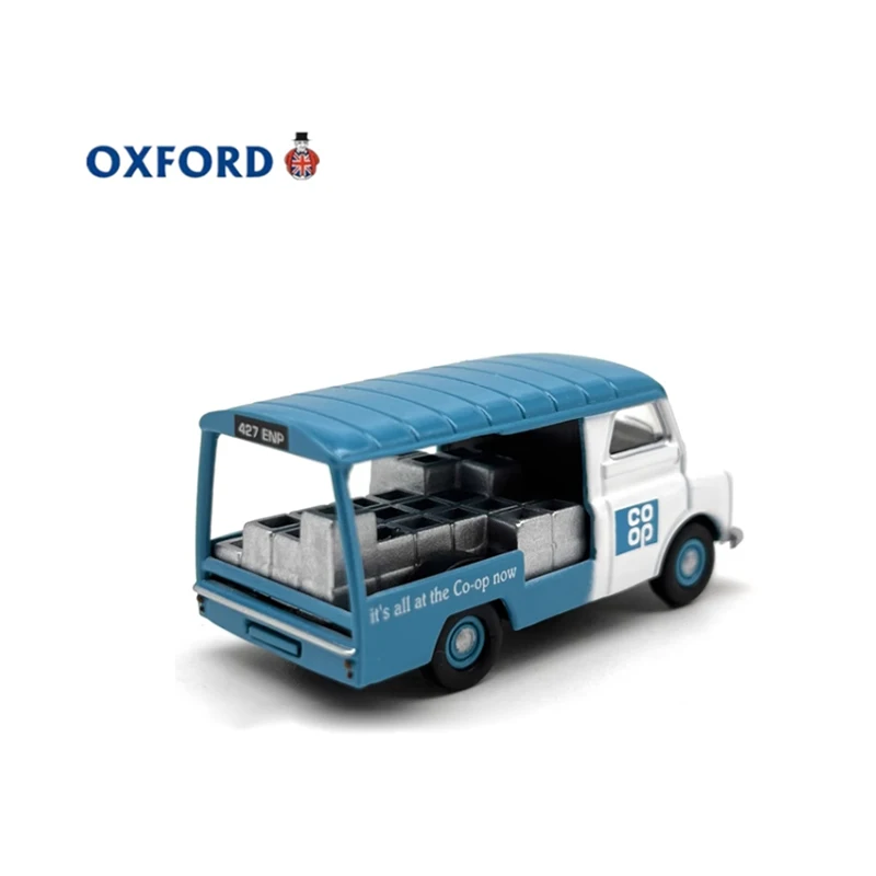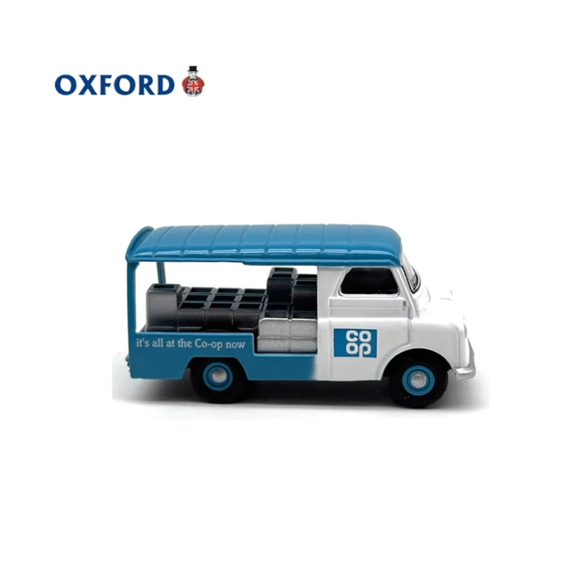 - Features a white body with a semi-blue cargo area and a striking blue, ribbed roof, accurately reflecting the vintage style of the Bedford CA Milk Carrier.