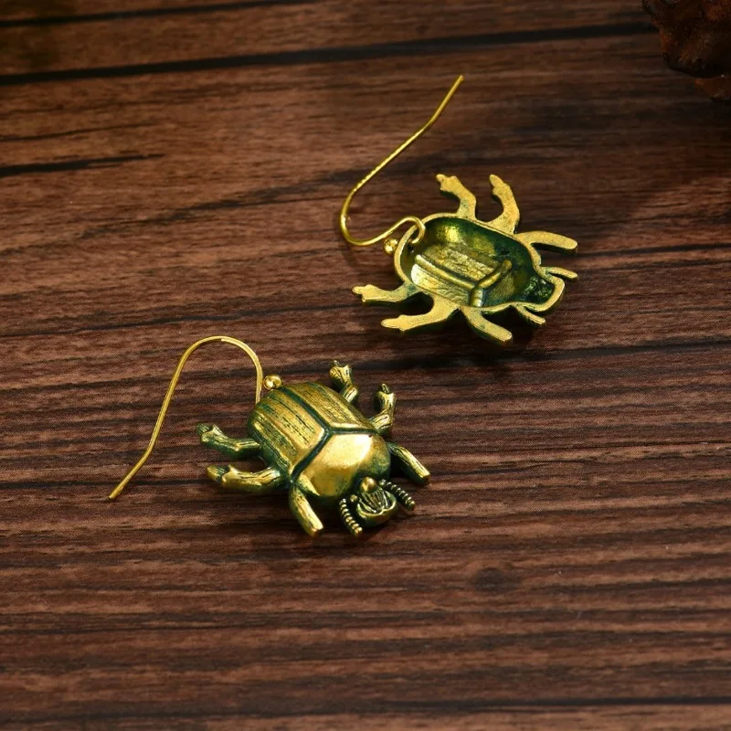 Enhance your style with these vintage insect-shaped drop earrings crafted from zinc alloy, available in elegant gold and silver tones. Featuring a detailed geometric design with a realistic beetle motif, they measure approximately suitable for women and girls. Their textured surface, raised wings, tiny legs, and antennae create a striking, three-dimensional appearance that adds bold character to any outfit. Perfect for parties, engagements, weddings, anniversaries, or daily wear, these earrings blend retro charm with intricate craftsmanship, making them an eye-catching accessory for fashion enthusiasts seeking to showcase their unique style.