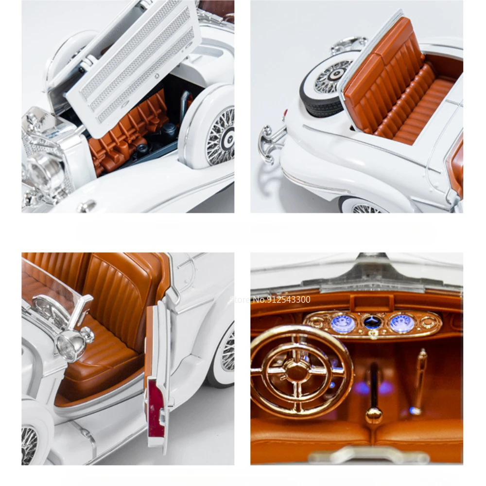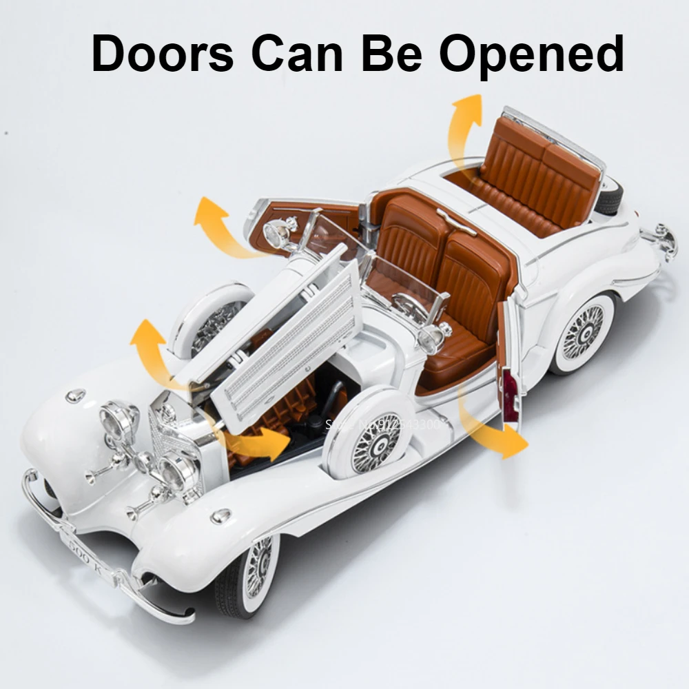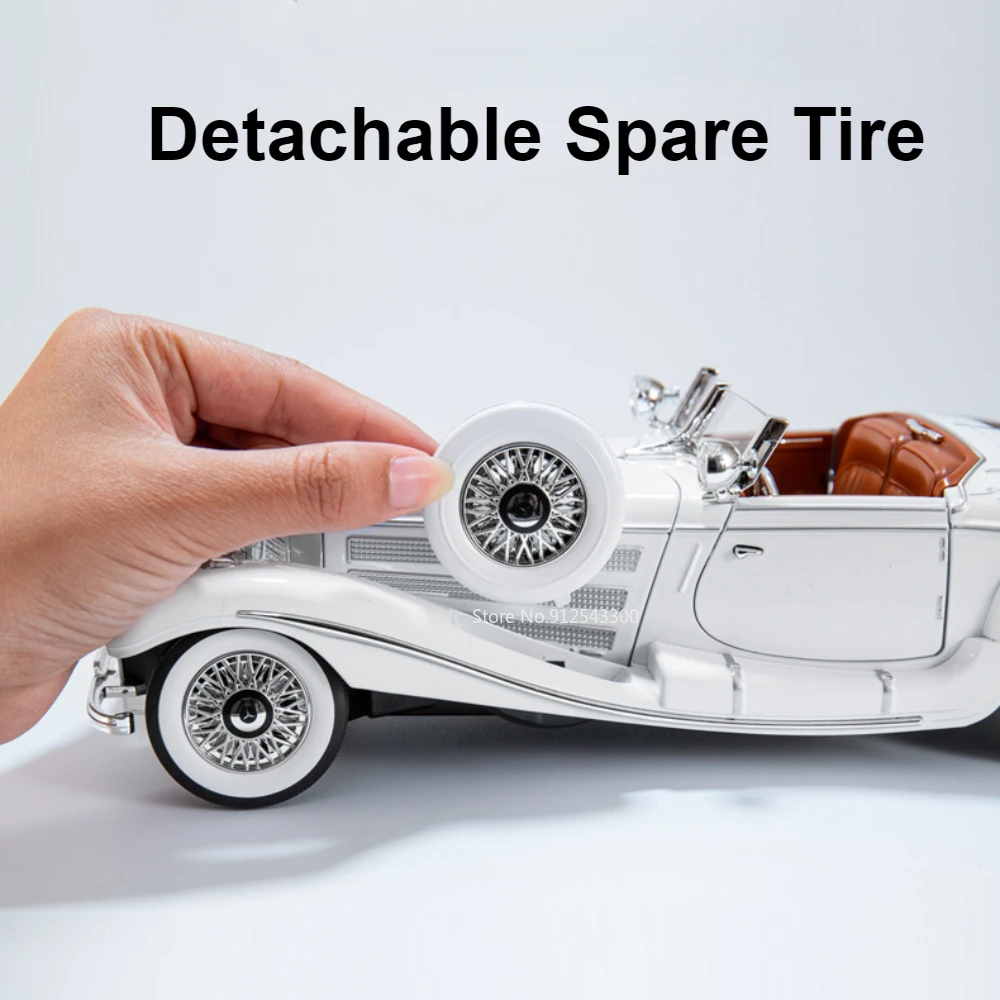 - Available in striking black and elegant white colors, closely resembling the classic Benz 500K’s iconic look for an authentic vintage appearance.