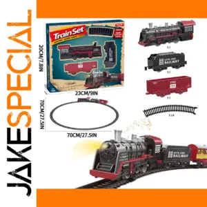 Experience timeless nostalgia with this vintage-style toy train set, featuring a sleek black locomotive accented by vibrant red details that evoke classic steam engines. Crafted from durable ABS plastic, the model includes realistic diecast components and textured railcars with detailed wheel features and subtle lettering, enhancing authenticity. Compatible with “2308 train tracks” and “2307 train tracks,” each stretch of approximately 70 cm, including curved sections, offers versatile track arrangements. With a retro design that appeals to both collectors and children, this non-electric high-speed rail toy provides an engaging, realistic play experience that sparks imagination and brings the charm of classic railway travel into your collection or play space.