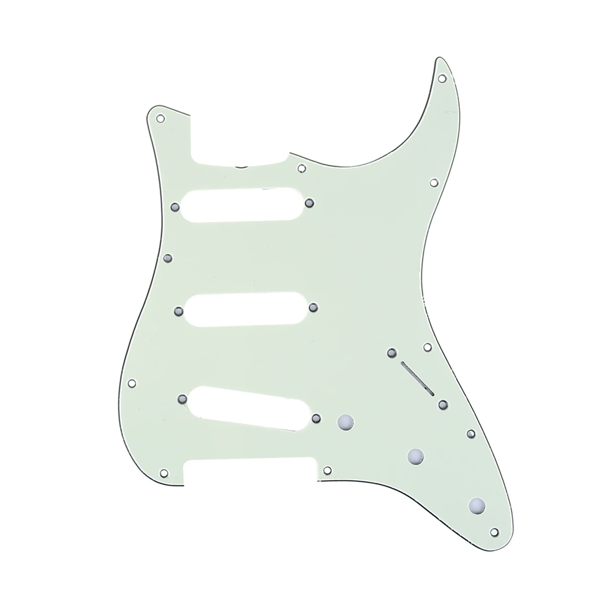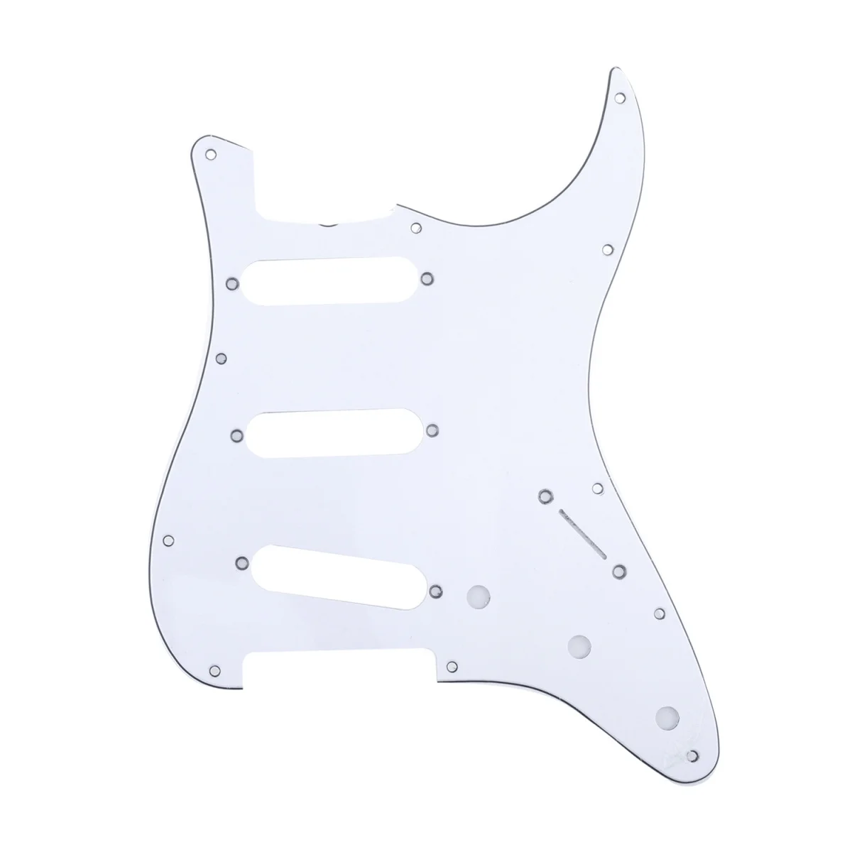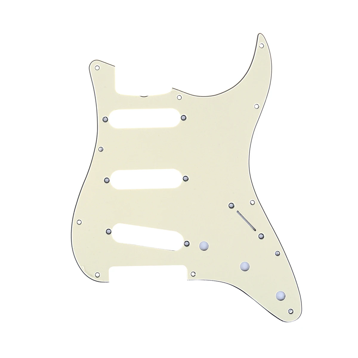 - Features 11 precision-drilled countersunk screw holes for a seamless, flush fit, and includes mounting points for three single-coil pickups, maintaining classic SSS configuration.