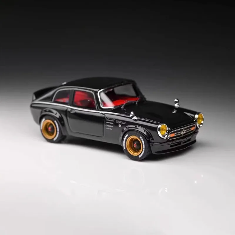 Bring a touch of vintage elegance to your collection with this meticulously crafted 1:64 scale Honda S800 resin model. Its glossy black finish highlights every curve and contour of the iconic sports car, making it a stunning tabletop decoration or collectible gift. The model features a smooth, rounded body with classic design elements, including distinctive round headlights with yellow tint, tiny black side mirrors, and a sleek, tapering roofline. The clear side windows reveal a vibrant red interior that adds a striking contrast. Handcrafted with rich detail, this model captures the essence of the original vehicle, offering an authentic and refined display piece for enthusiasts and collectors alike. Elevate your space with this timeless model.