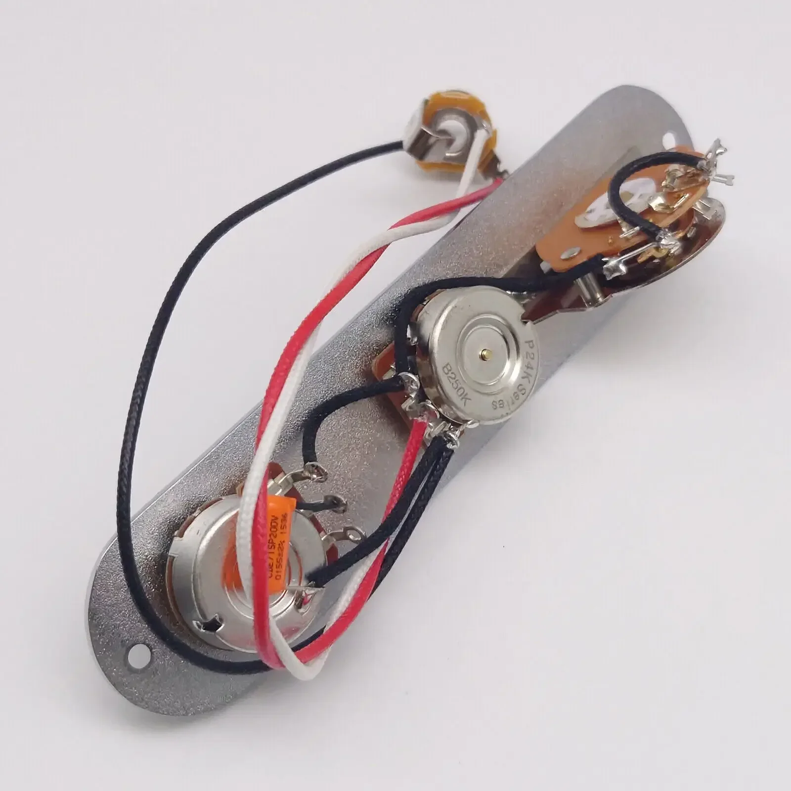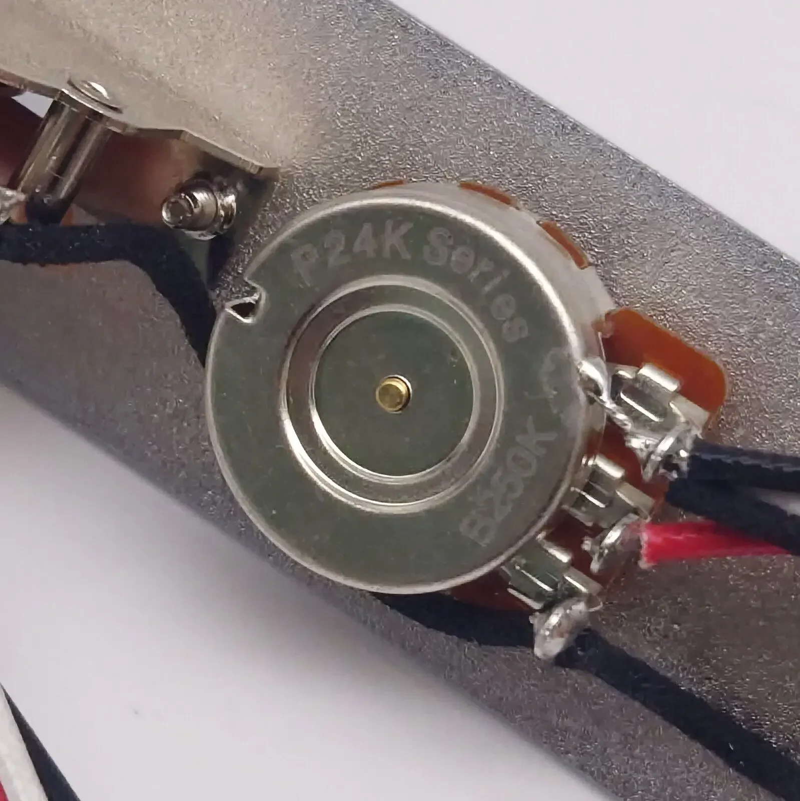 - It includes a high-quality 3-way toggle switch, two brass-colored 250K potentiometers, and chrome metal knobs with pearl tops for a sophisticated vintage look.