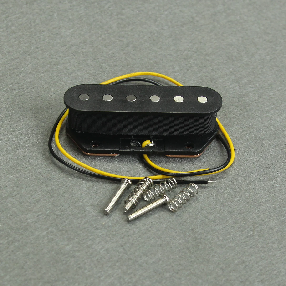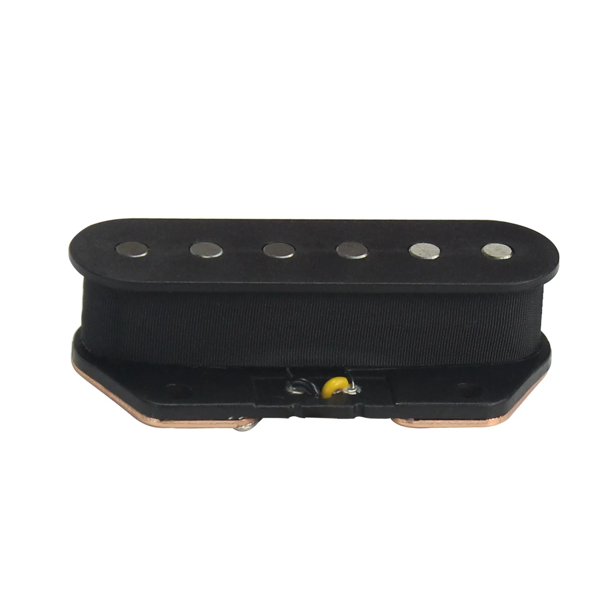 Imagine upgrading your guitar with this elegant, vintage-inspired pickup that combines classic style with modern reliability. Its elongated oval shape with a matte black finish offers a minimalist yet captivating aesthetic, perfectly suited for TL-style guitars. The six flat, fixed pole pieces with rounded metallic tops create a precise, industrial look, while the yellow coil wire visible beneath the black casing adds a subtle pop of color. Built with durable ABS plastic and a copper-steel baseplate, this pickup promises longevity and stability. Fully wax potted to minimize feedback and noise, it ensures a smooth, vintage tone that resonates with clarity and character. This high-quality replacement part is perfect for enthusiasts seeking both style and performance in their instrument.