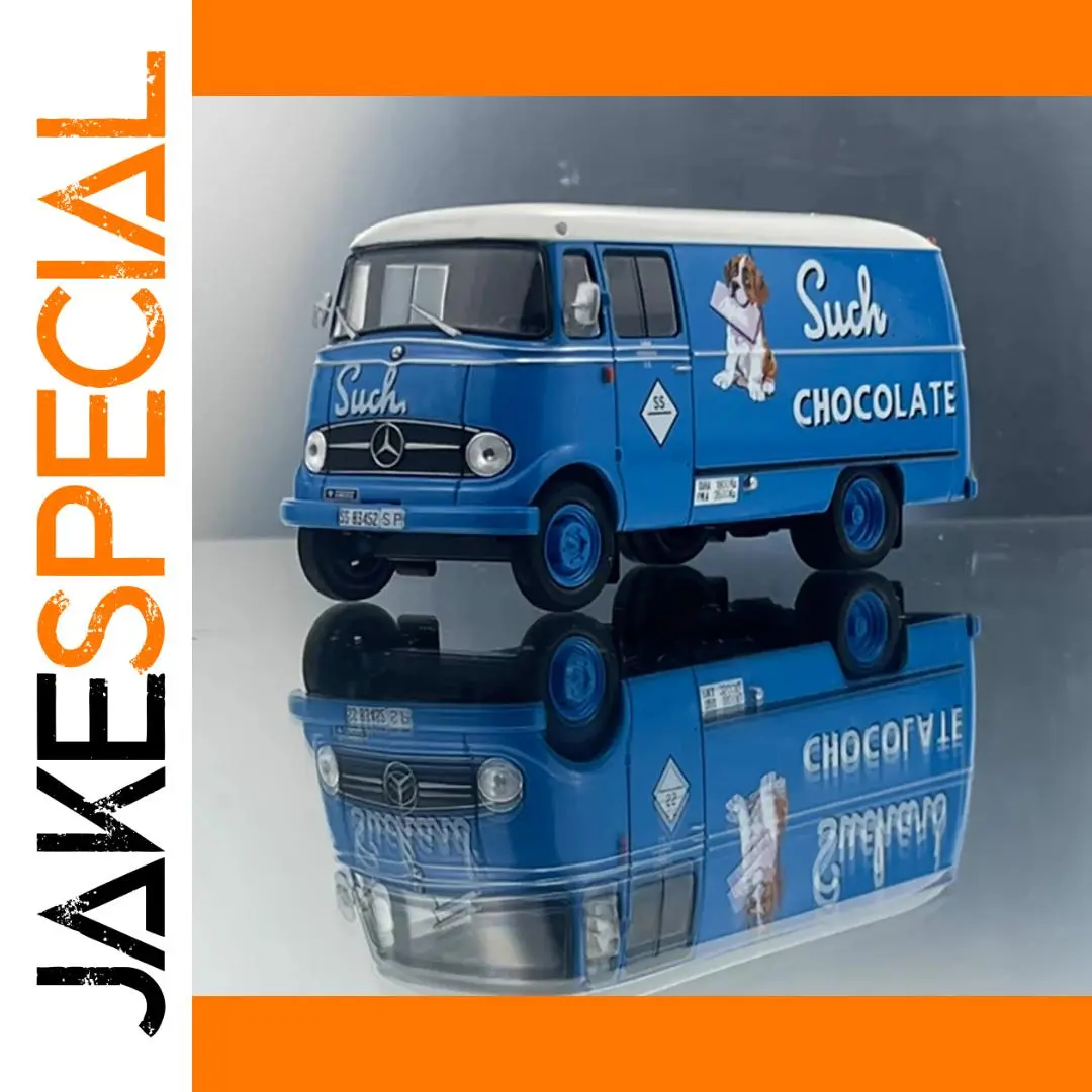 Imagine adding a touch of nostalgia to your collection with this stunning vintage van diecast model. Designed with remarkable detail, it features a vibrant bright blue color that instantly captures the eye. The rounded, boxy shape and flat front grille with black and silver accents reflect the classic Mercedes-Benz L319 style from 1968. The large, curved windshield, circular headlights, and silver side mirrors enhance its authentic vintage appeal. On the side, a playful graphic showcasing the word “CHOCOLATE” in bold block letters, complemented by an adorable brown and white puppy holding a letter, creates a nostalgic and whimsical vibe. Perfect for display, this model will bring warm memories and charm into your space.