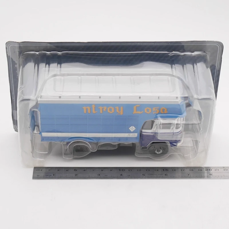 Step into nostalgia with this beautifully crafted vintage-inspired diecast truck by IXO. Designed in stunning 1:43 scale, this model measures approximately 10.5 centimeters long, making it perfect for display and collection. The truck features a striking combination of dark and bright blue shades, with a bold orange decal on the cargo container that creates a vibrant contrast. The glossy white grille, circular headlights, detailed side mirrors, and white stripes on the doors evoke a classic, retro aesthetic. Crafted with premium alloy and ABS plastic, this model showcases meticulous attention to detail, from the textured tires to the vintage decals. It’s an ideal decorative piece to enhance your collection or gift to an enthusiast who appreciates nostalgic design and fine craftsmanship.