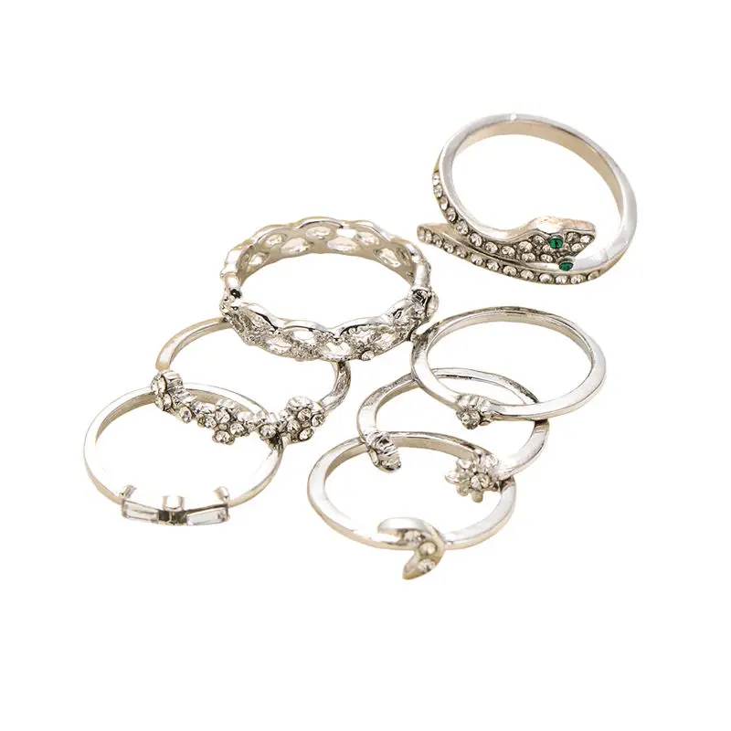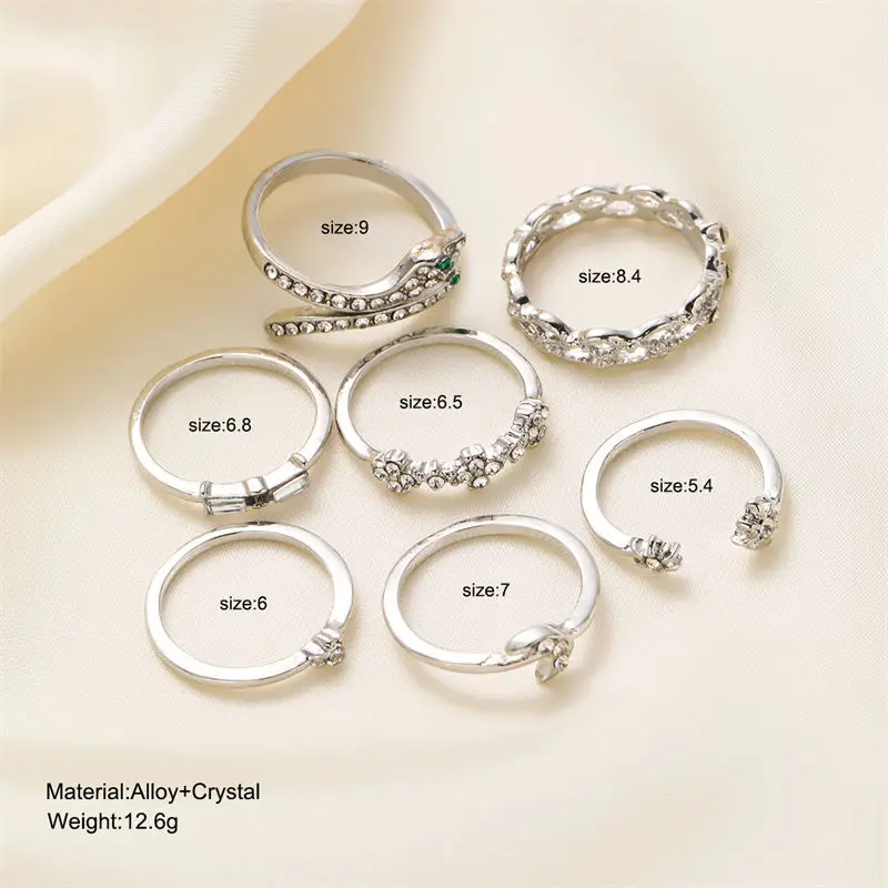 - Includes adjustable rings featuring detailed snake, moon, and star motifs, with geometric hollow designs decorated with tiny artificial gemstones for added sparkle.