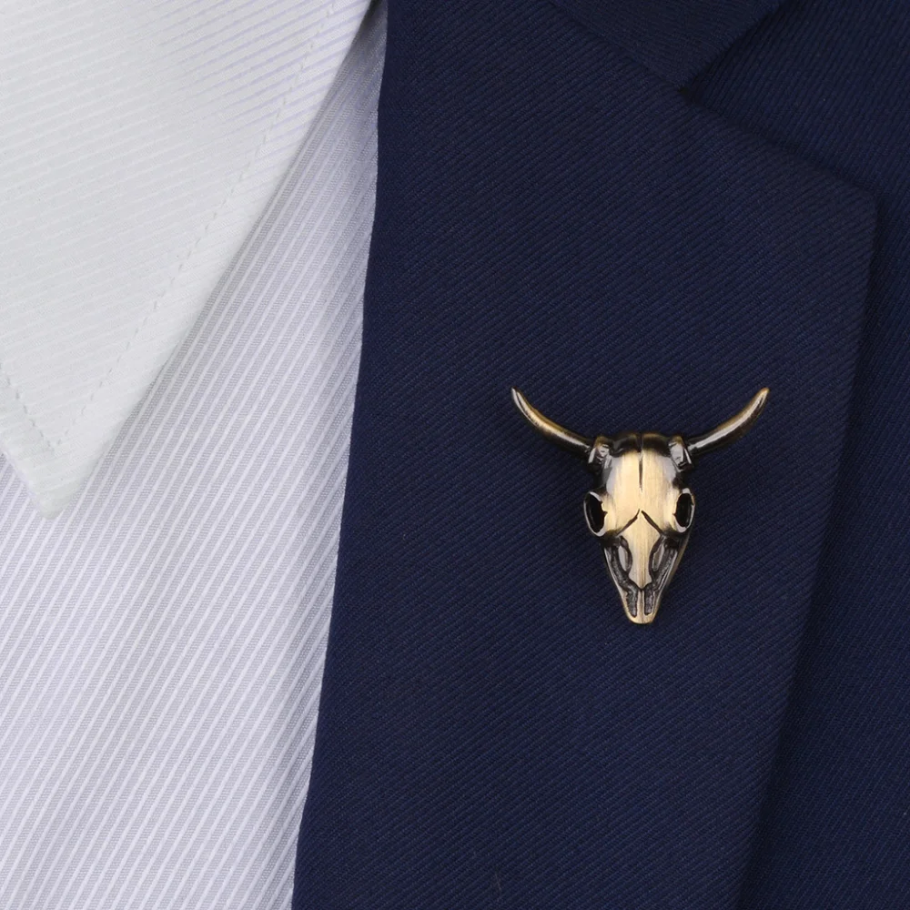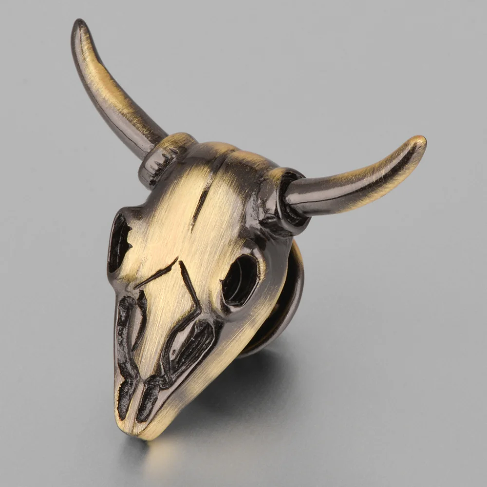 This vintage brass cattle skull brooch for style