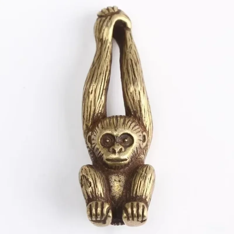 Imagine adding a touch of traditional craftsmanship to your space with this beautifully detailed brass monkey figurine. Crafted from solid brass with an antique finish, it exhibits a light grey aged brass appearance that complements any decor style. The figurine's playful pose, with arms extended upward grasping a curved branch-like object, exudes a lively personality. Its smooth, rounded edges and textured fur pattern highlight exceptional workmanship, giving it a vivid, handcrafted appeal. Small enough to fit on a desk or shelf, this decorative piece effortlessly combines durability and elegance, making it perfect for home, office, or cafe environments. Bring a unique blend of traditional Chinese artistry and timeless design into your everyday surroundings.